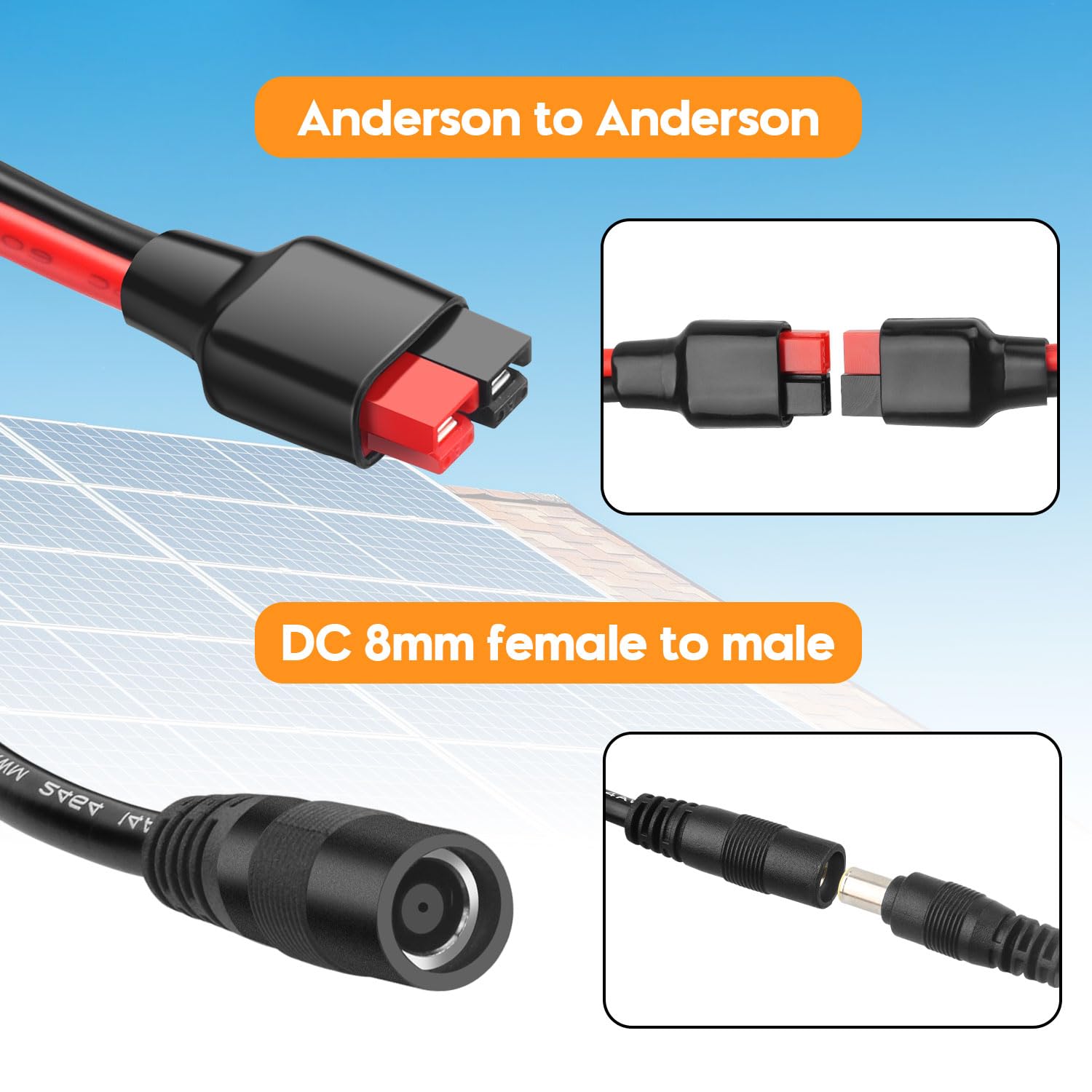 Wide Application: DC8mm Female conenctor and Anderson connector Combiner Cable compatible with the Goal Zero plug, fit for GZYeti/ExpertPower/MAXOAK/BLUETTI/Jackery Solar Generator Power Station. (Not applicable for Jackery Explorer Series 1500/2000 Pro Portable Power Station)