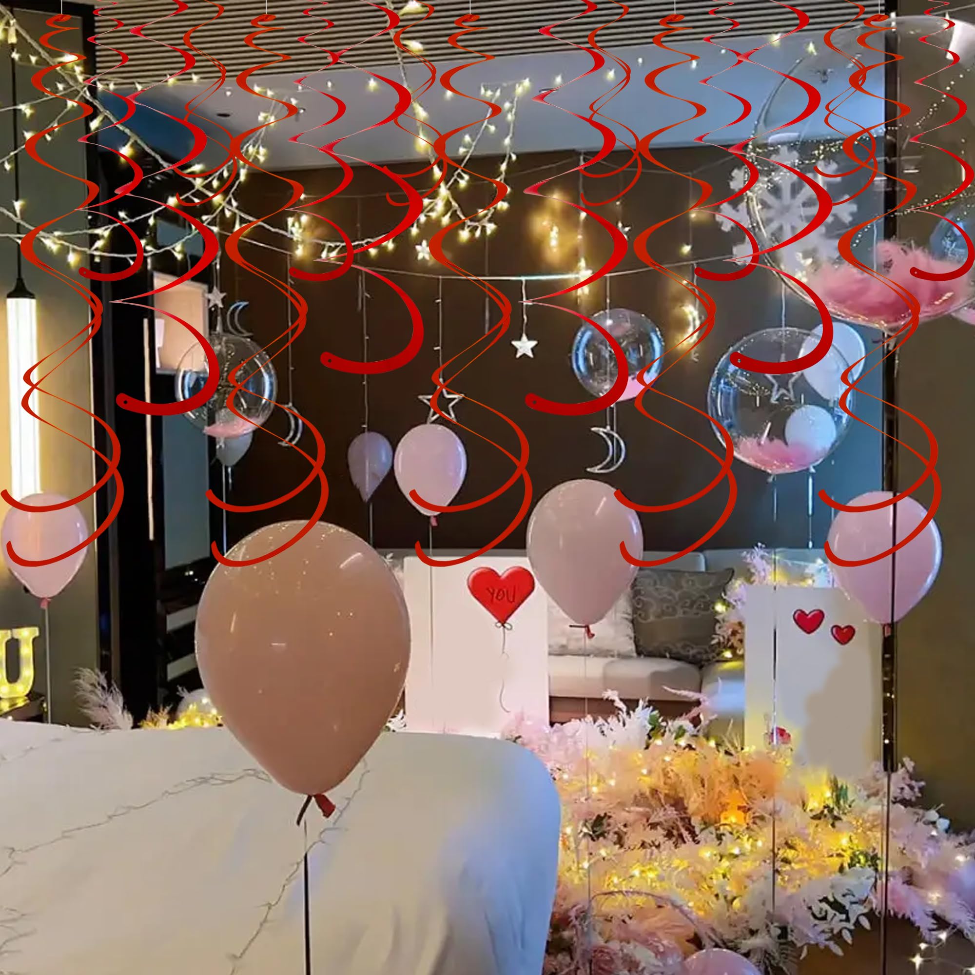 Quality Material: Red ceiling swirl foil decorations are made of pvc material, light weight, have elastic and bright color. For indoors use, it’s dazzling in the light, attractive people’s attention. Passionate red, warm expression of love