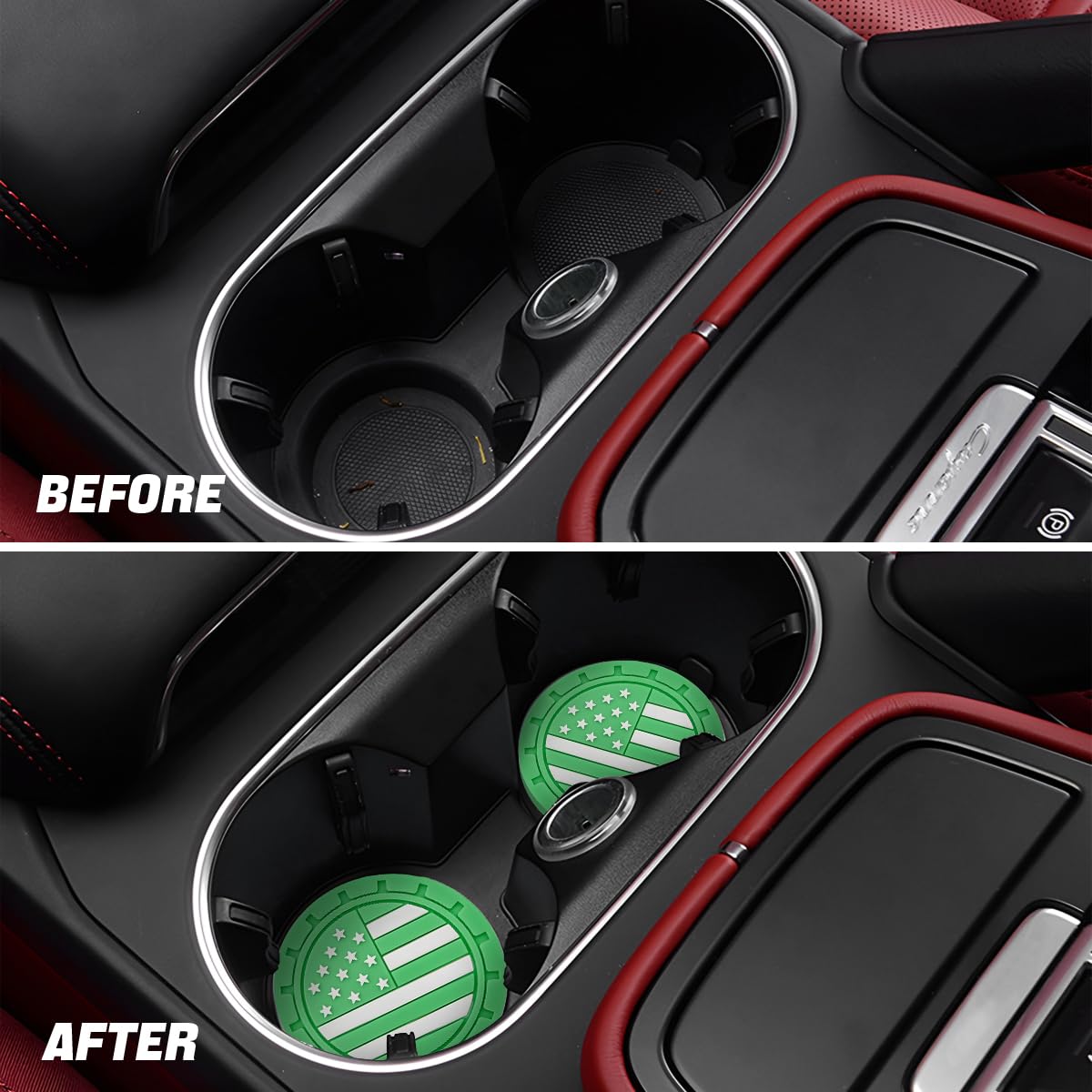 Excellent Material: This car cup holder coaster is made of high quality eco-friendly PVC material, resistant to wear and tear, can withstand high and low temperatures, and can be used in extreme weather. It is meticulously made and fits tightly, with a non-slip design at the bottom and top to effectively prevent the cup from sliding.