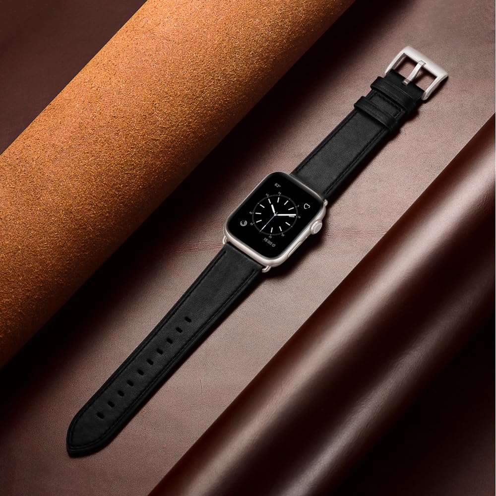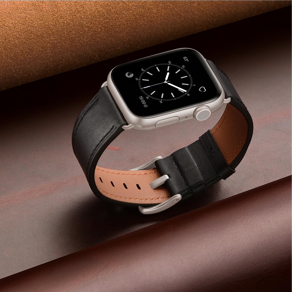 Design: OUHENG watch band uses fashionable leather style design with stainless steel buckle, convenient and easy to interchange. The watch band connectors and buckle are compatible with Apple watch Series 11/10/9/8/7/6/5/4/3/2/1/SE3/SE2/SE All models. It can be men's or women's, simple but attractive, look fantastic and giving a nice professional look on any occasion.