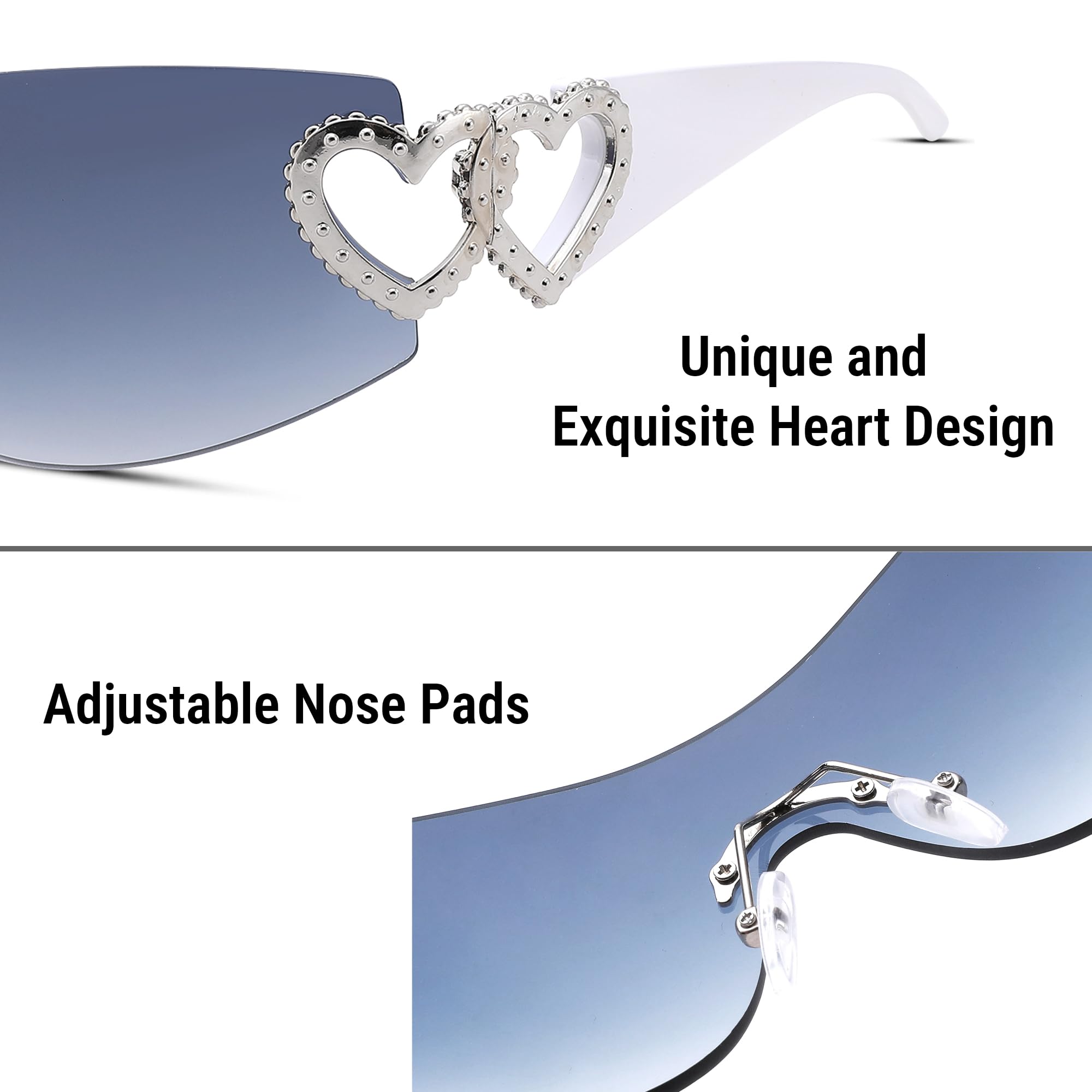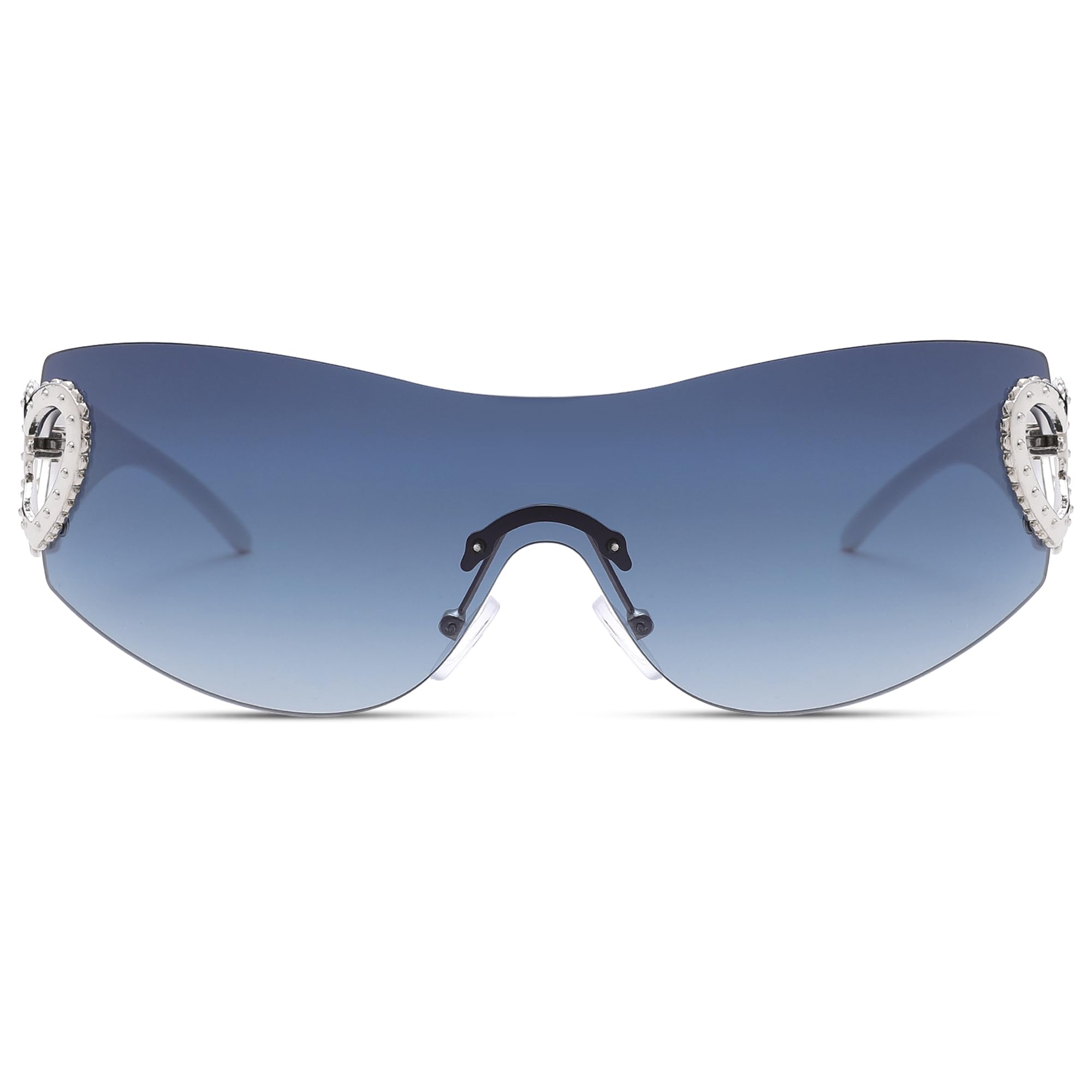 Trendy 2000s Sunglasses:These rimless sunglasses have various lens colors including black, pink, clear and gradient. Picking these futuristic wrap around sunglasses, let them makes you have a cool look.