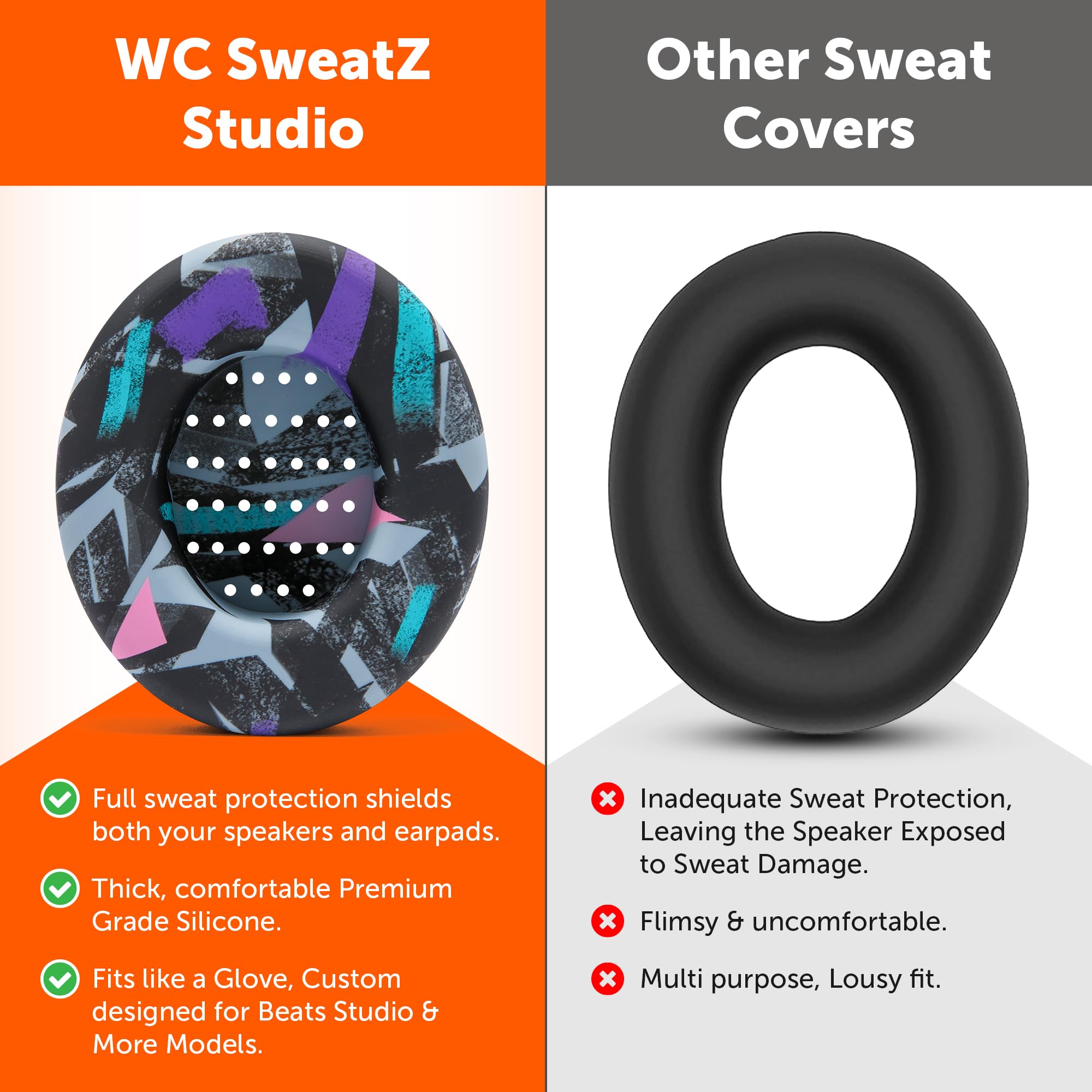 Ultimate Defense: Unlike other sweat covers, WC Sweatz Studio protect the entire earpad including the inside drivers. WC Sweatz Studio silicone covers slide on and off your existing Beats Studio headphone ear pads in seconds, keeping them fresh and protected from sweat, moisture, and everyday wear.