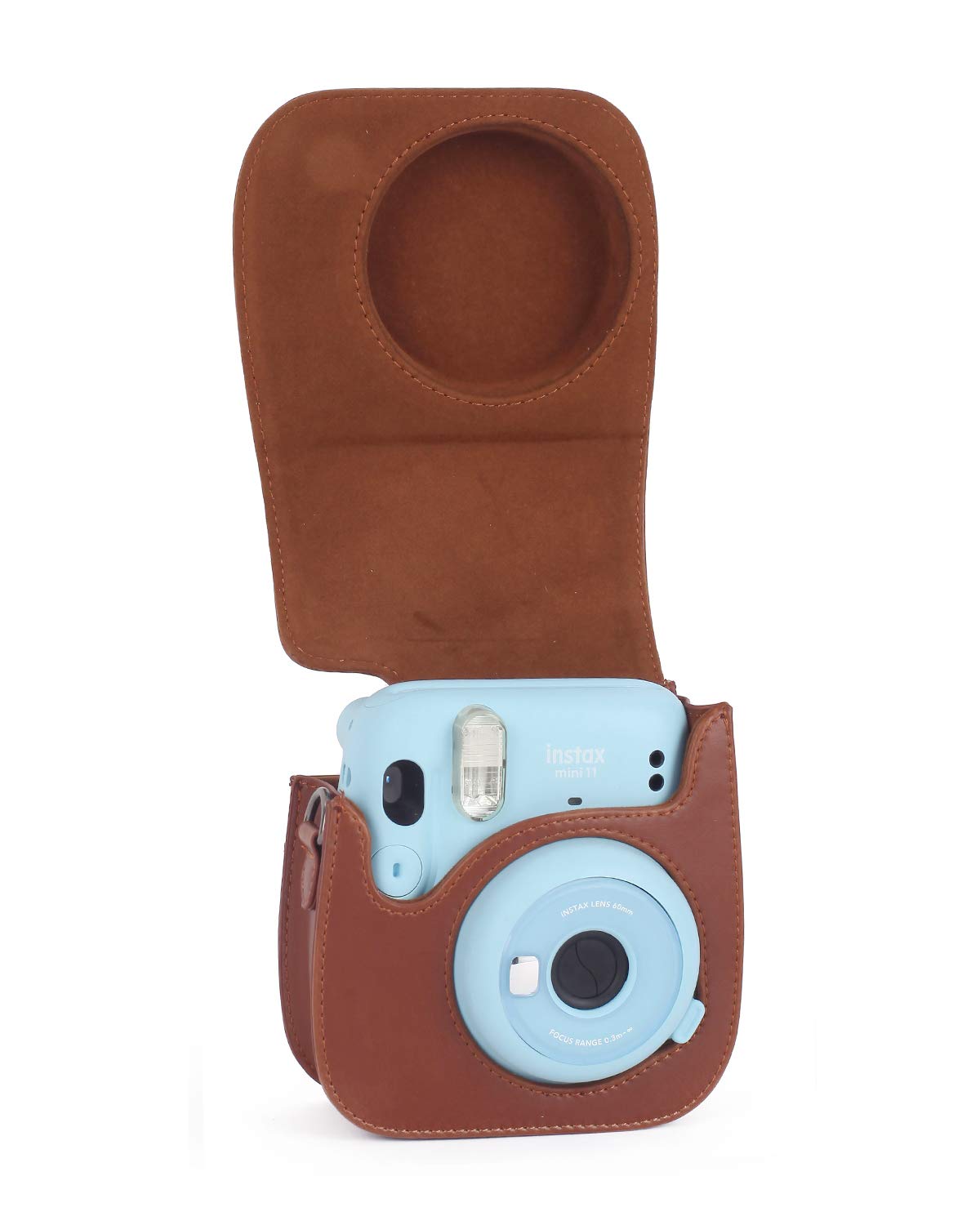 Ease of use-flip cover design, the top part of this mini 12 case can be detachable.You do not have to take the camera out when taking pictures. There is also a pocket at the back of the case for your shots to be stored temporally.Enjoy photography happily and easily