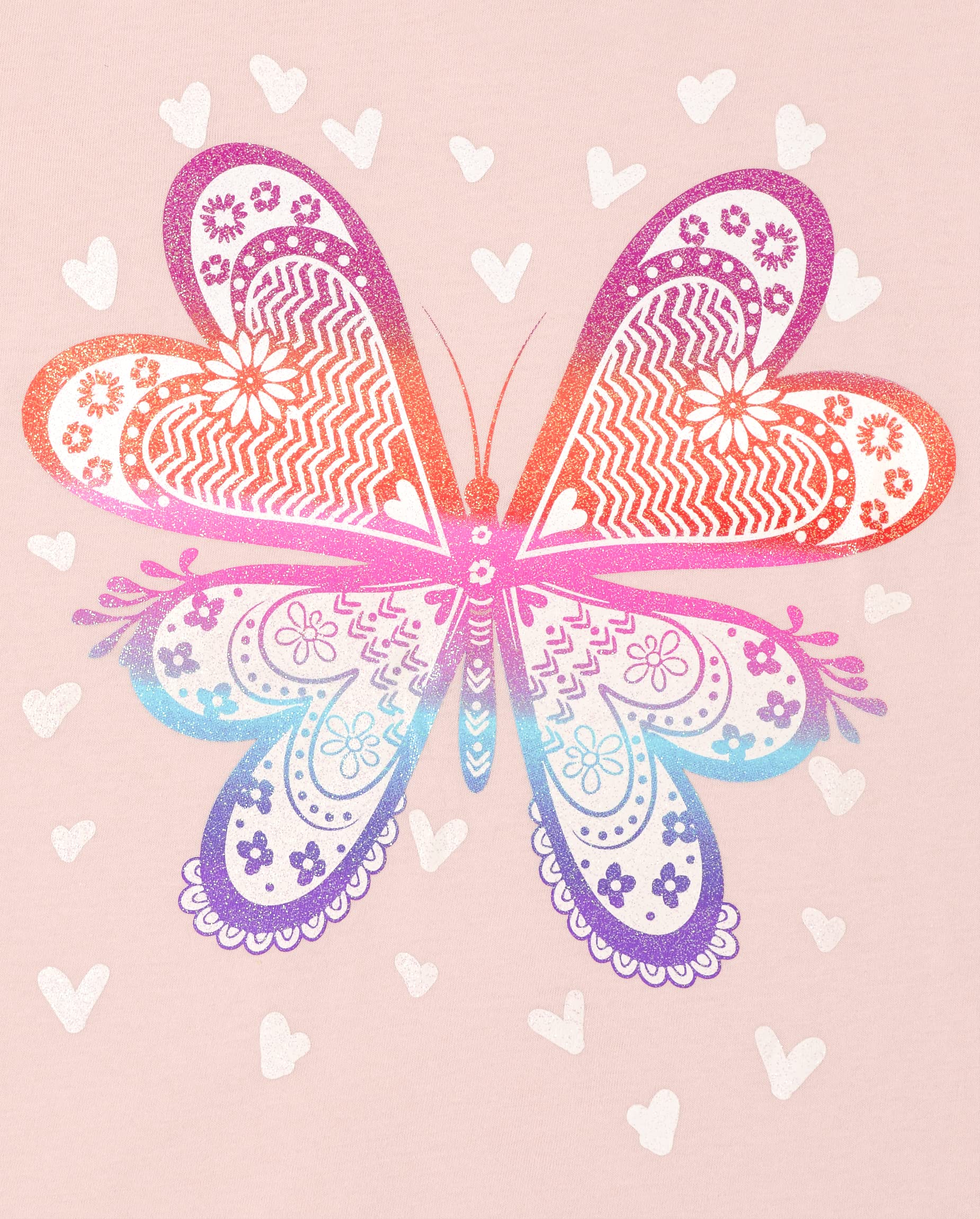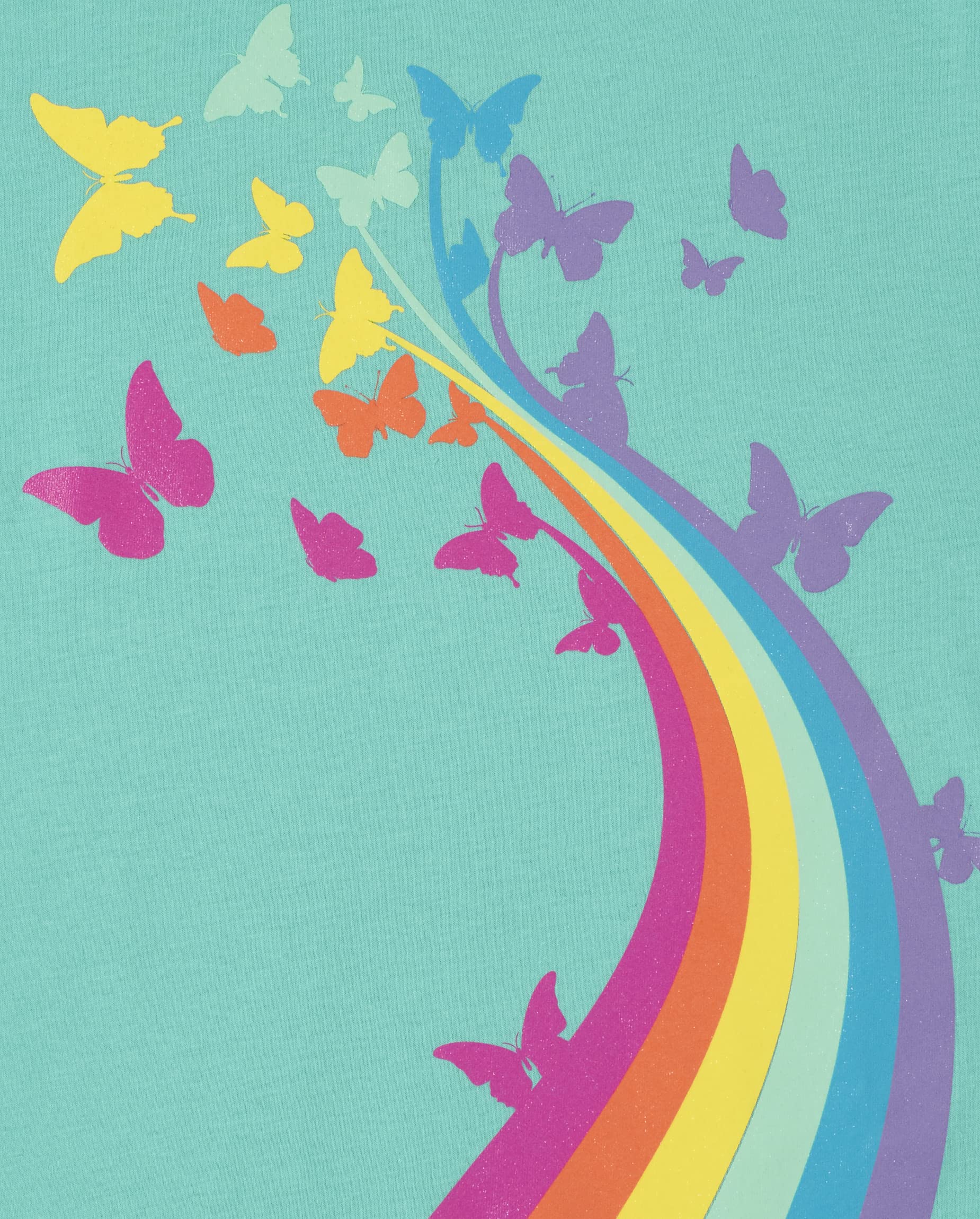 MULTIPACK — 3-pack of graphic t-shirts: 1 style with butterfly graphic design at front; 1 style with butterfly and hearts graphic design at front; 1 style with rainbow and butterflies graphic design at front