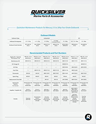 Replacement oil filter for Mercury and Mariner 8hp and 9.9hp EFI ProKicker 4-stroke outboards (323cc), 15hp and 20hp 4-stroke carbureted outboards and the 25hp and 30hp EFI 4-stroke outboards (model year 2006 and newer). The Quicksilver brand is the leader in delivering uncompromising engine oils, parts and accessories to the marine industry for over 65 years.Quicksilver is the premier supplier of Mercury Marine original equipment replacement engine parts, oils, and accessories, but also works to serve all original equipment brands in the marine and powersports industries.It has earned a loyal following by providing the highest quality products that are tested through some of the most rigorous environments and testing procedures. No aftermarket company comes close to the level of research and design as Quicksilver; buying Quicksilver is buying performance, protection and peace of mind.