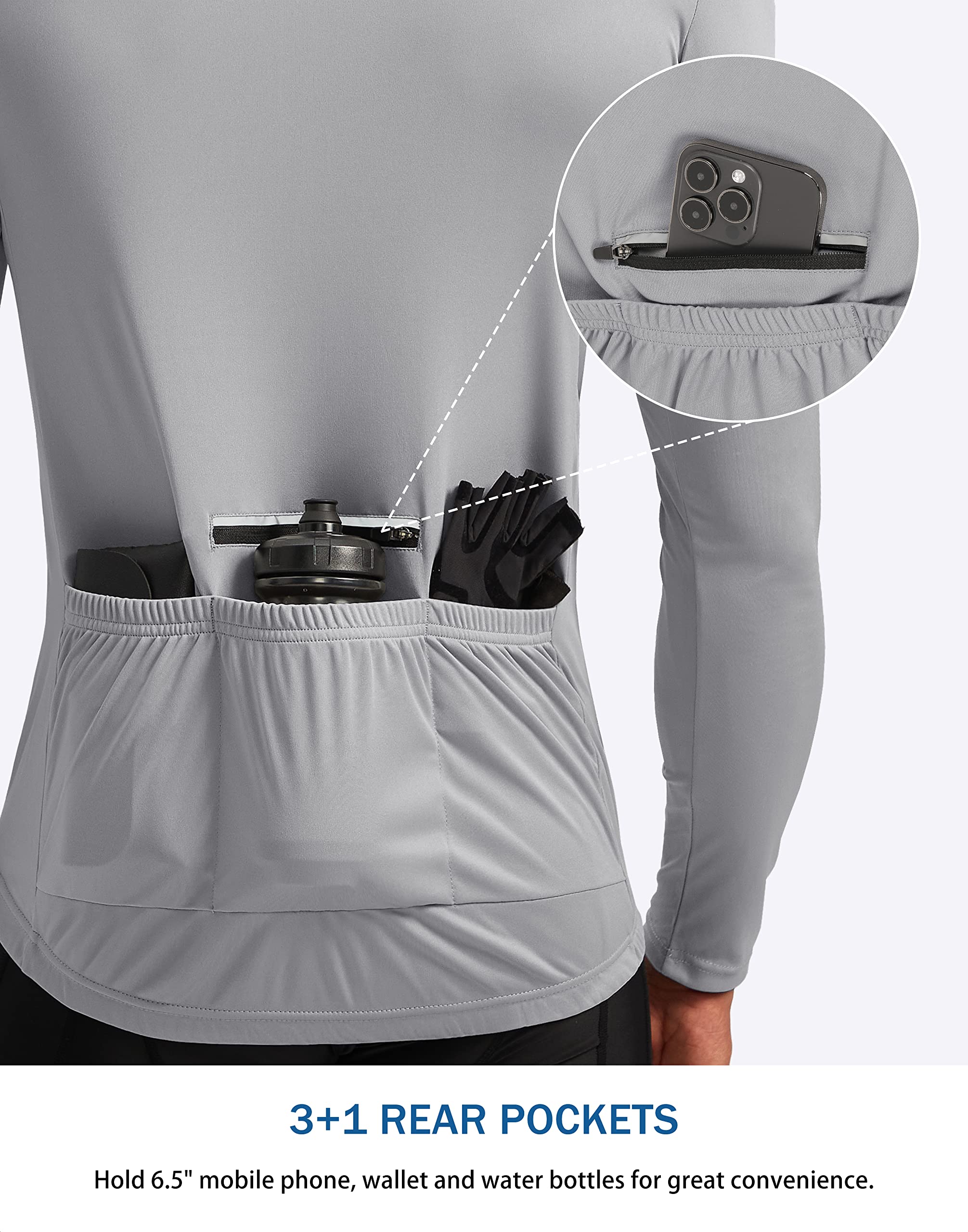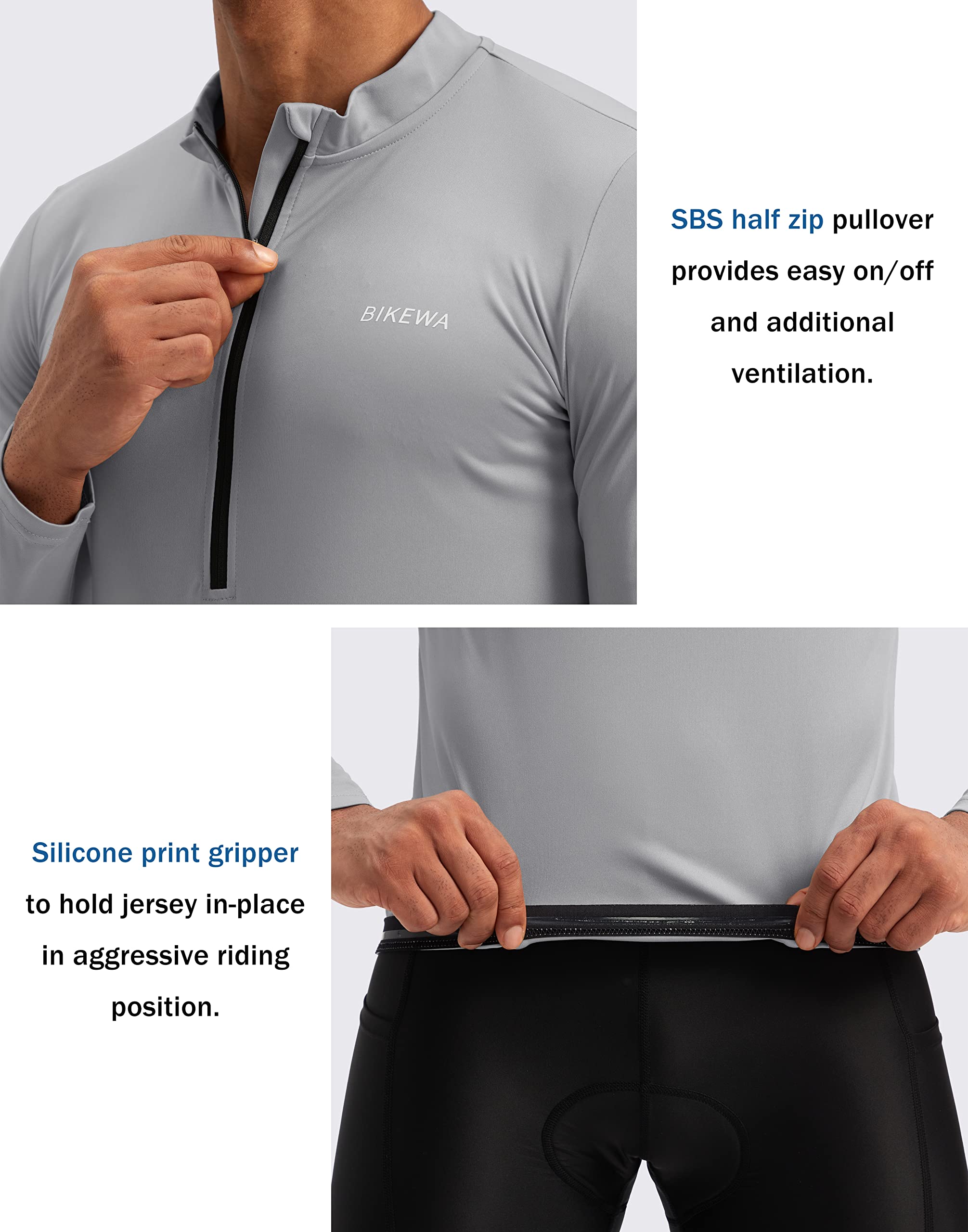 Easy Wear & Silicone Gripper Hems: 11 inch SBS half zip pullover provides easy on / off and additional ventilation, stand collar avoid pucker. Front and rear gripper to hold jersey in-place in aggressive riding position, preventing fluttering in the wind.