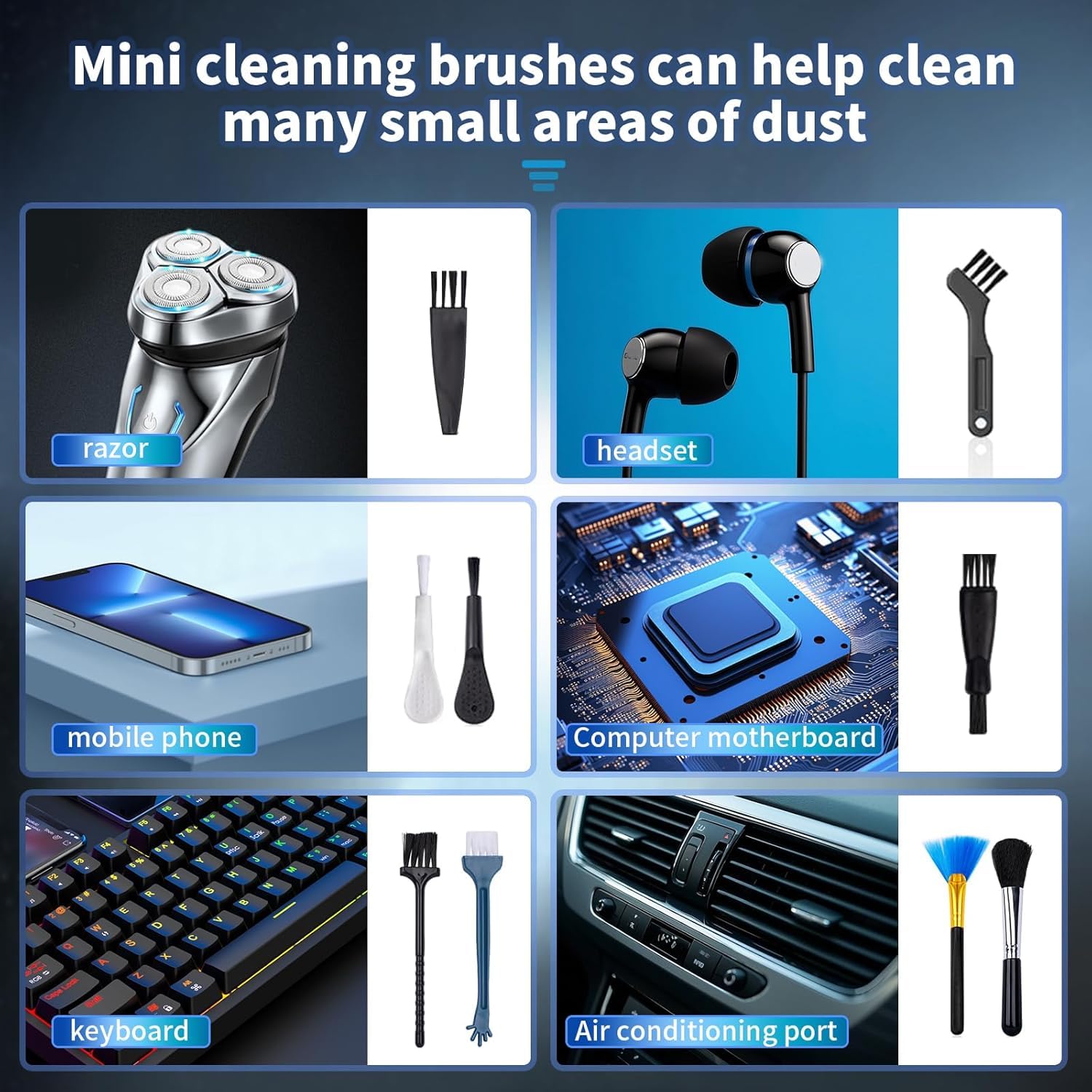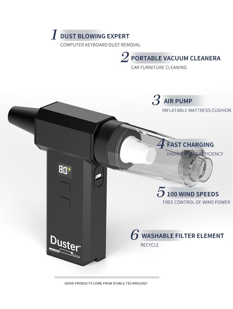 🛠️【Wide Application】: The electric air duster & Car Vacuum Cleaner comes with3 nozzles + 10 brushes Removable nozzles and brushes are applied in different places. Perfect for cleaning dust, hair, crumbs, debris from sofa, rug, carpet, desktop, laptop, keyboard, blinds and so on, convenient to use in car, at home and office.