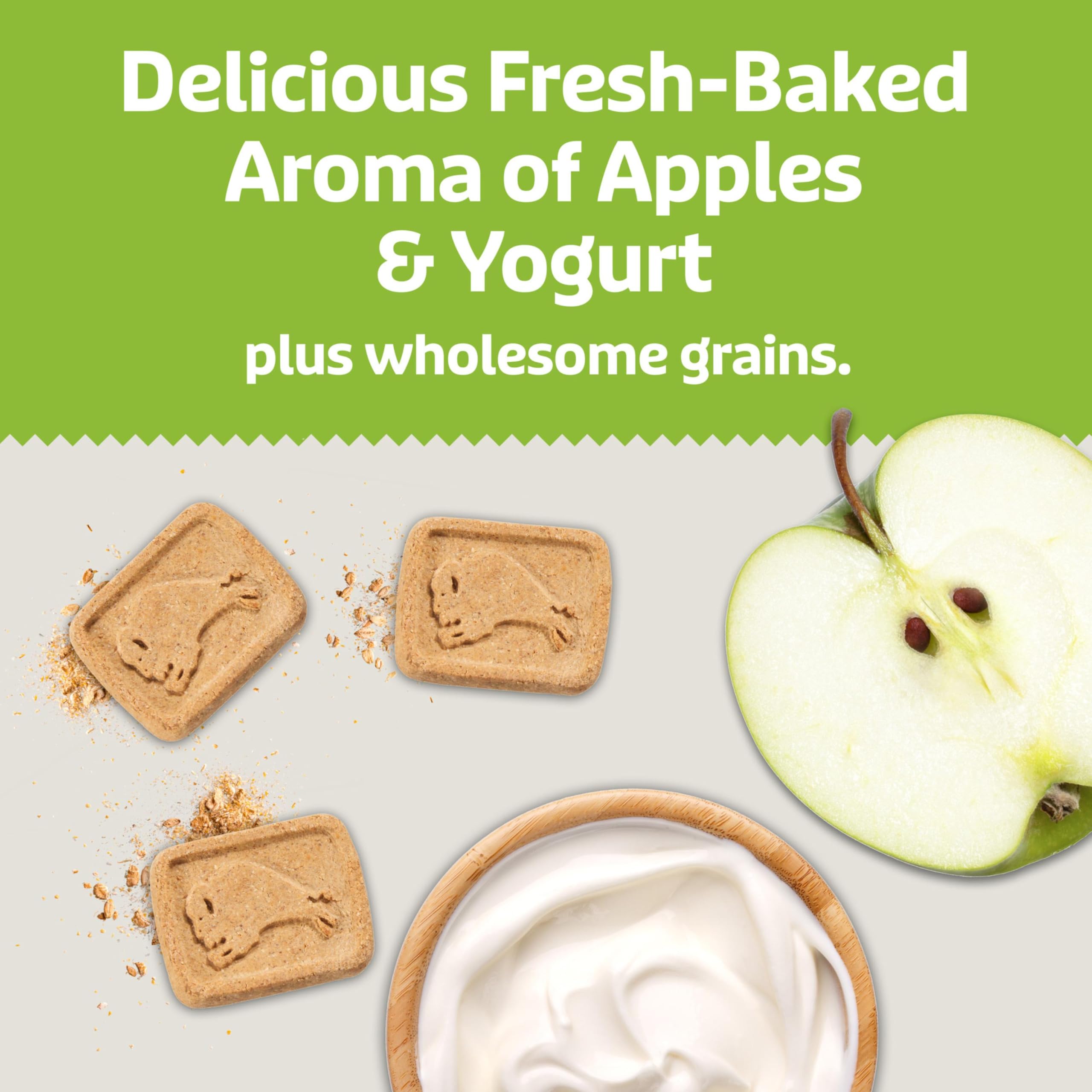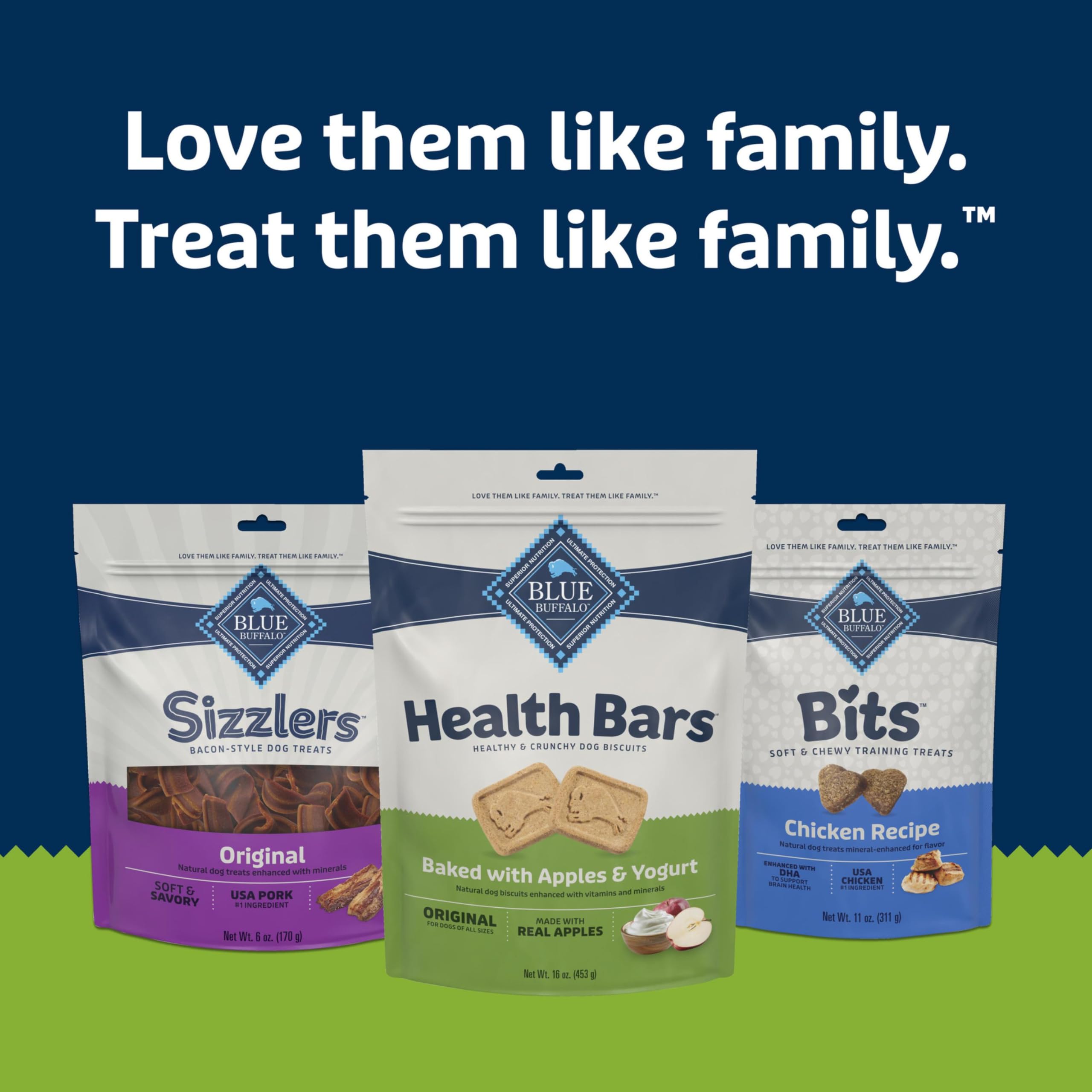 Product Description A classic cookie for discerning Pet Parents, Blue Buffalo Health Bars dog treats deliver the great taste and satisfying crunch our furry friends love — without the corn, wheat, or soy you might find in other biscuits. Blue Buffalo Health Bars contain real, mouthwatering ingredients with the flavors and aromas of your own favorite foods. Combining the scents of oven-baked apples, cinnamon, and yogurt, this recipe evokes wholesome and sweet apple pie. These crunchy dog treats let you satisfy those cravings while keeping your food to yourself. BLUE Health Bars are great for all breed sizes, and they are easy to break into smaller pieces for training or a tasty reward. Made with the finest natural ingredients, enhanced with Omega 3 fatty acids and antioxidants, and oven-baked for a big crunch, these treats are as healthy as they are tasty! From the Manufacturer Made with wholesome whole grains and nutritious vegetables, fortified with Omega 3 fatty acids and important antioxidants, and Contains no corn, wheat or soy