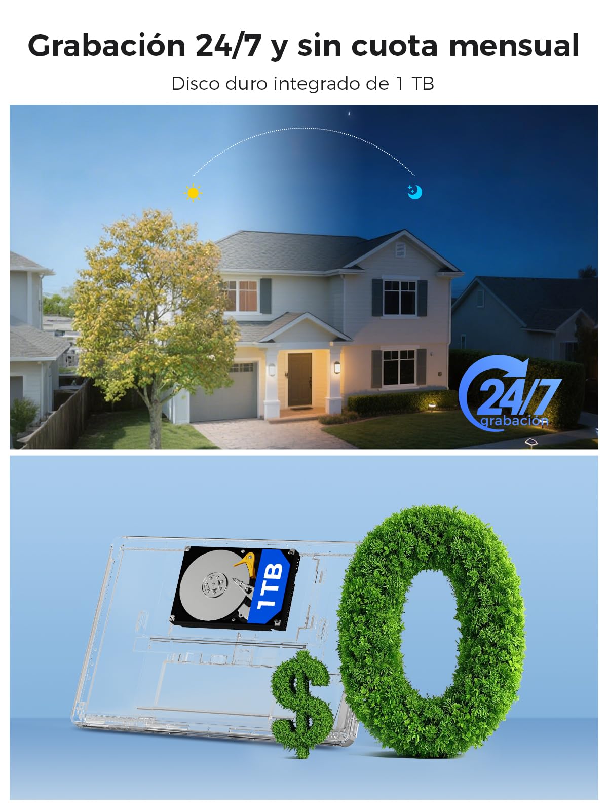 24/7 Recording & NVR 10 Channels: Upgraded H.265+ tech is able to occupy less storage space without decreasing image quality, which can extend the recording duration. The 1TB hard drive preinstalled ensure a recording over 45 days under 24x7 video recording mode. No Monthly fees is needed. The NVR supports 4K image output and max. 10 Channels cams recording at the same time. (NOTICE: THE CAMERAS ARE NOT SOLAR POWERED. THEY NEED PLUG-IN POWER SUPPLY)