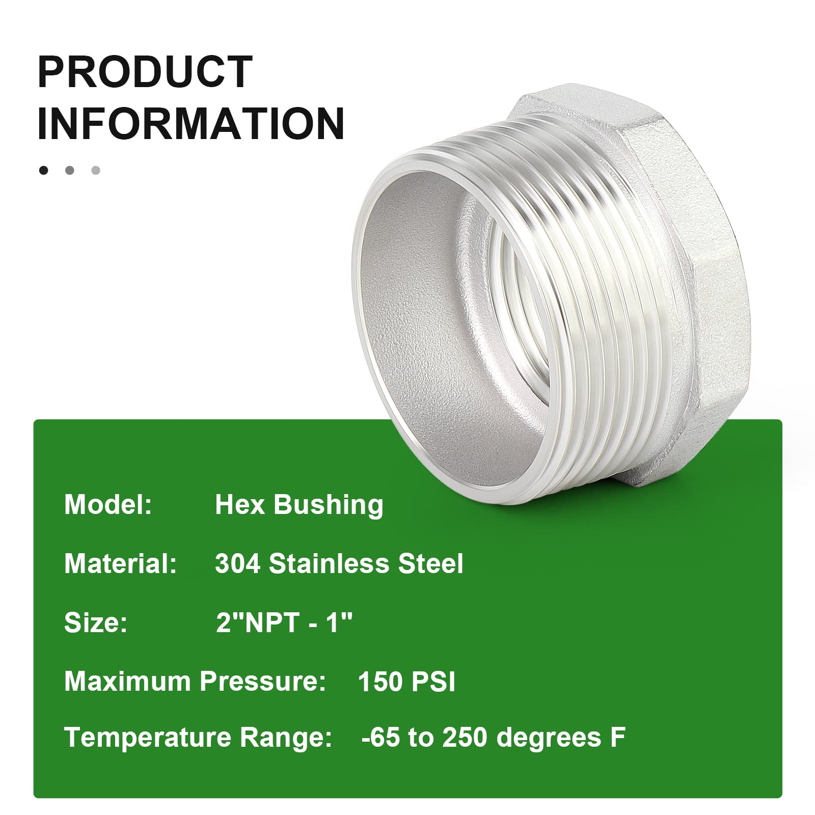 [ Product Type ] Reducer Hex Bushing(2" NPT Male x 1" NPT Female) ,for industry connecting pipes or fittings with different end types, diameters, or materials.