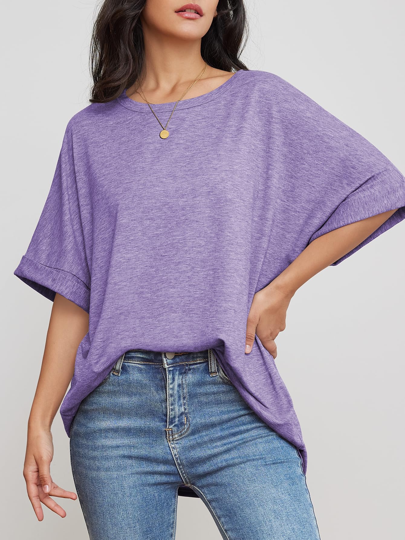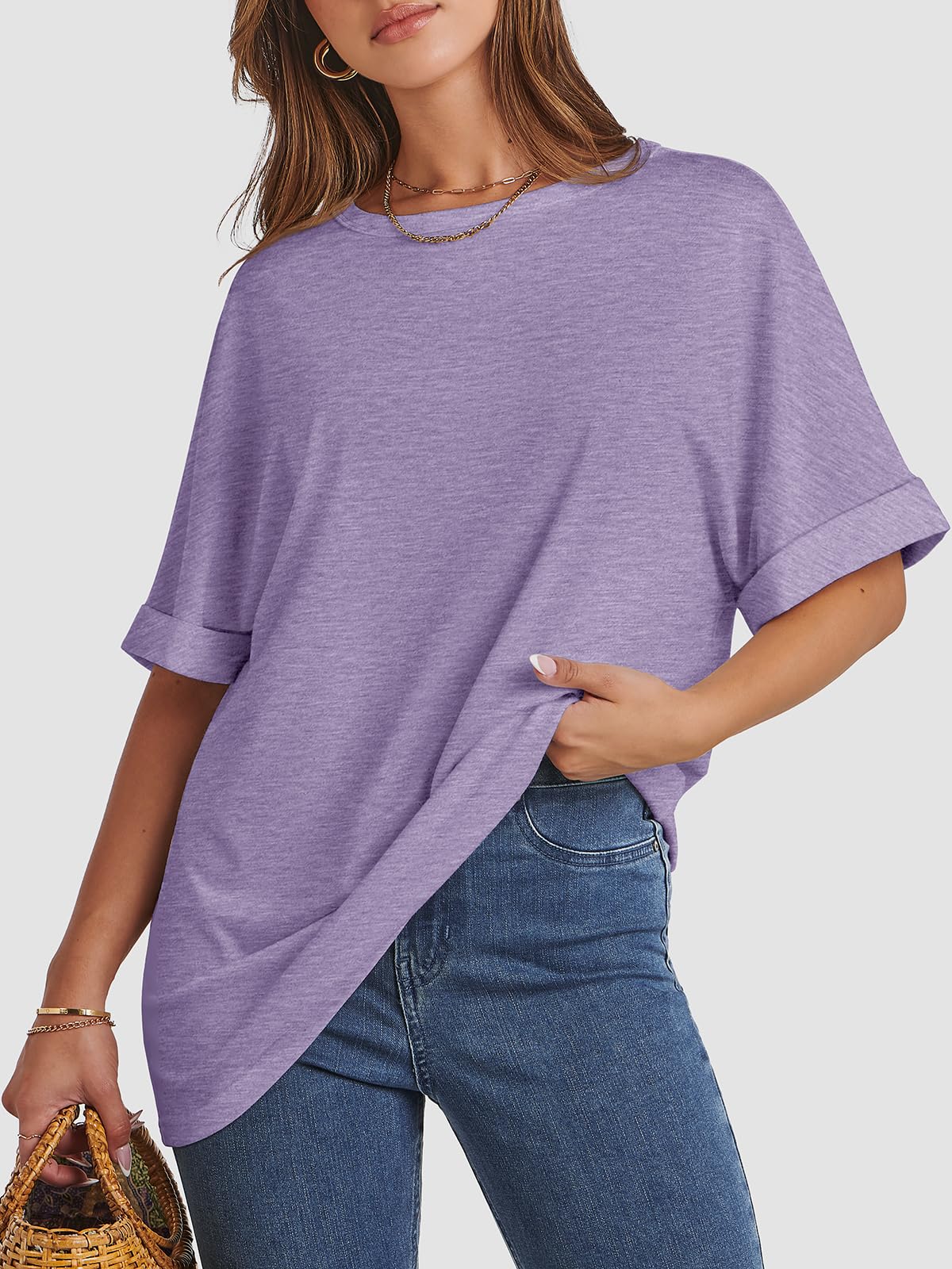 Features: Plus Size,Casual Crew Neck, Rolled Sleeves Design-Adds a Nice Little Details to the Simple Tee, Plain Basic T Shirts. Perfect to Wear in all Seasons.