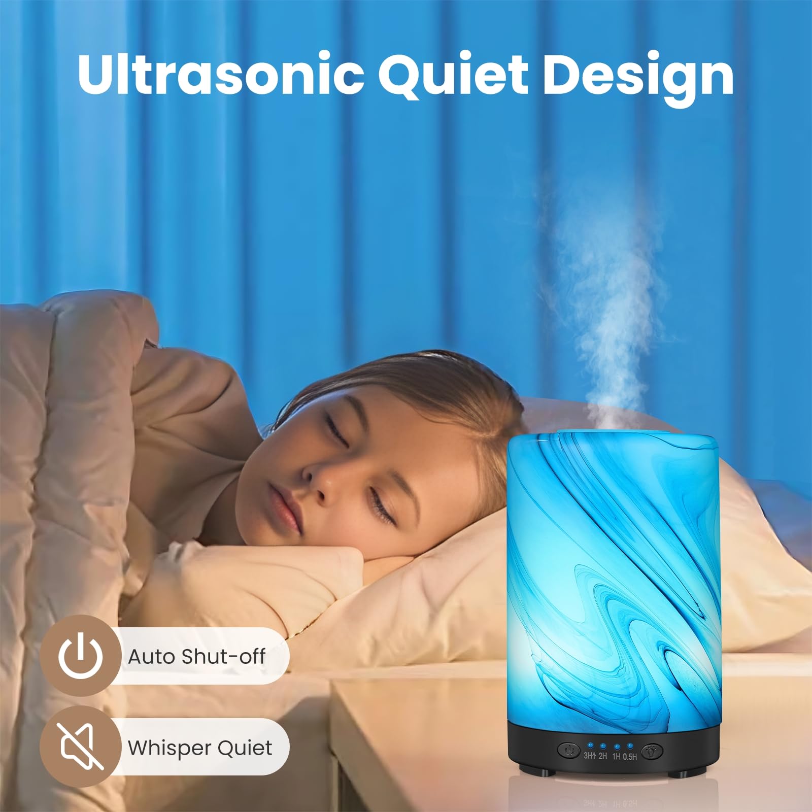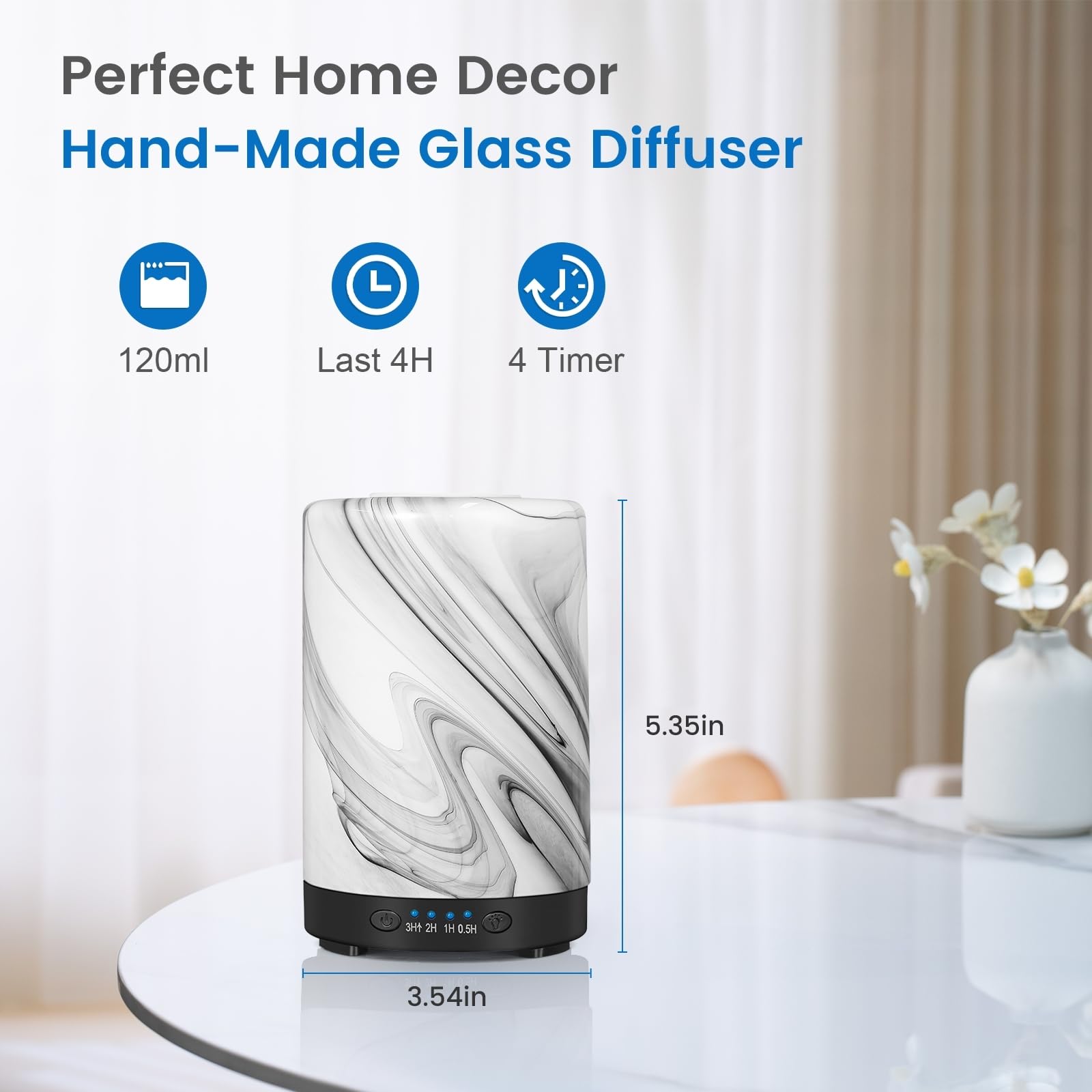 Elegant Design: Handcrafted glass exterior with stunning Gray Wave patterns. This glass oil diffuser perfectly aligns with all kinds of decor styles. It is not just functional but also an exquisite decor for shelves, tables, or desks in homes, offices studios or spa rooms, adding a decorative touch and delightful scent.