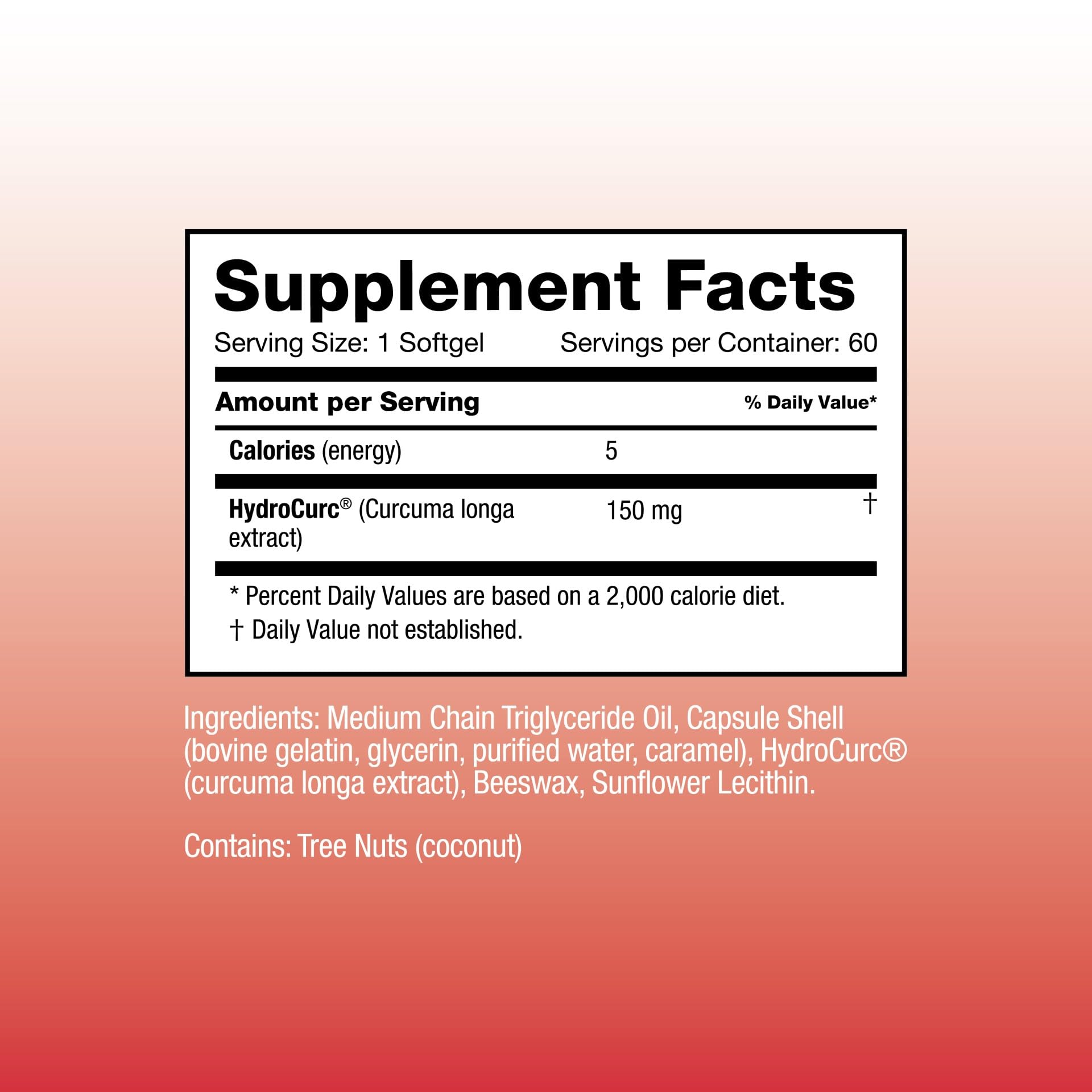ALL-NATURAL MCT OIL SOFTGEL: No fillers, binders, artificial colors or preservatives. Our curcumin is also soy free, gluten free and dairy free.