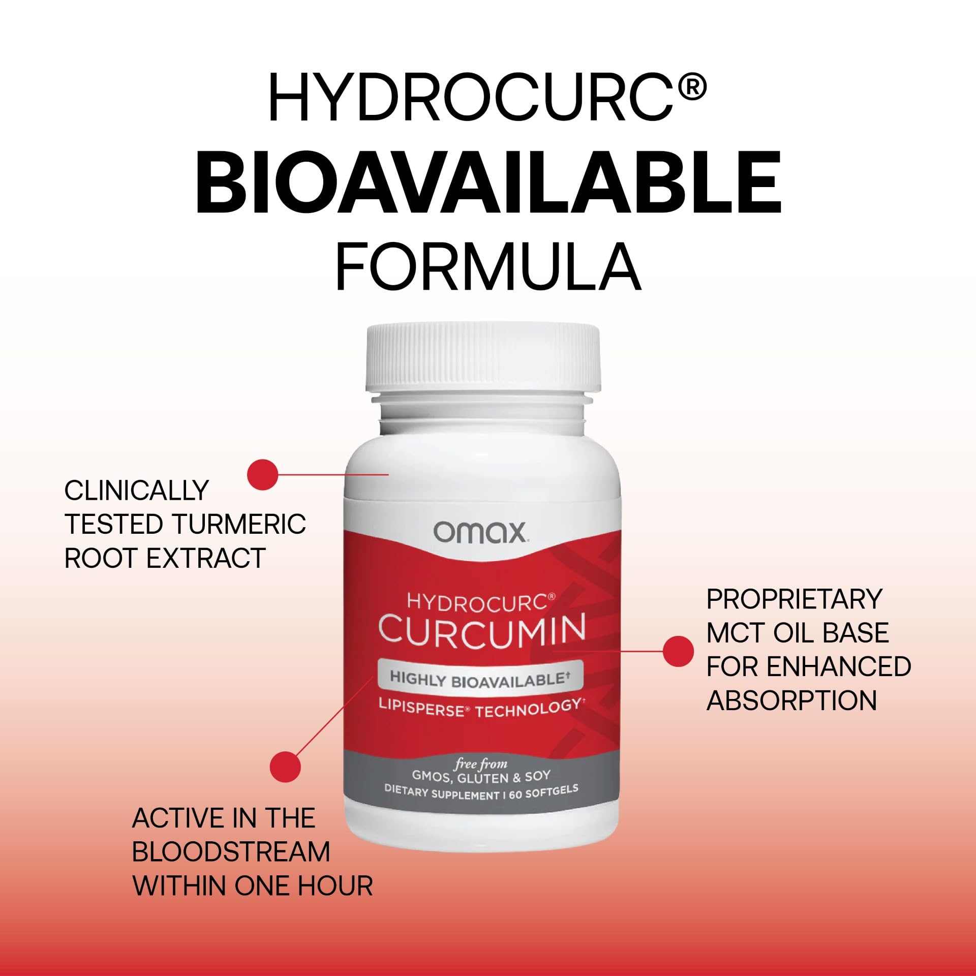 HIGHLY BIOAVAILABLE HYDROCURC CURCUMIN EXTRACT: All natural & highly bioavailable formula tested to be active in the bloodstream within 1 hour. More effective than 95% curcuminoids with black pepper due to our proprietary matrix of dispersible Curcumin combined with MCT oil in an easy to take softgel.