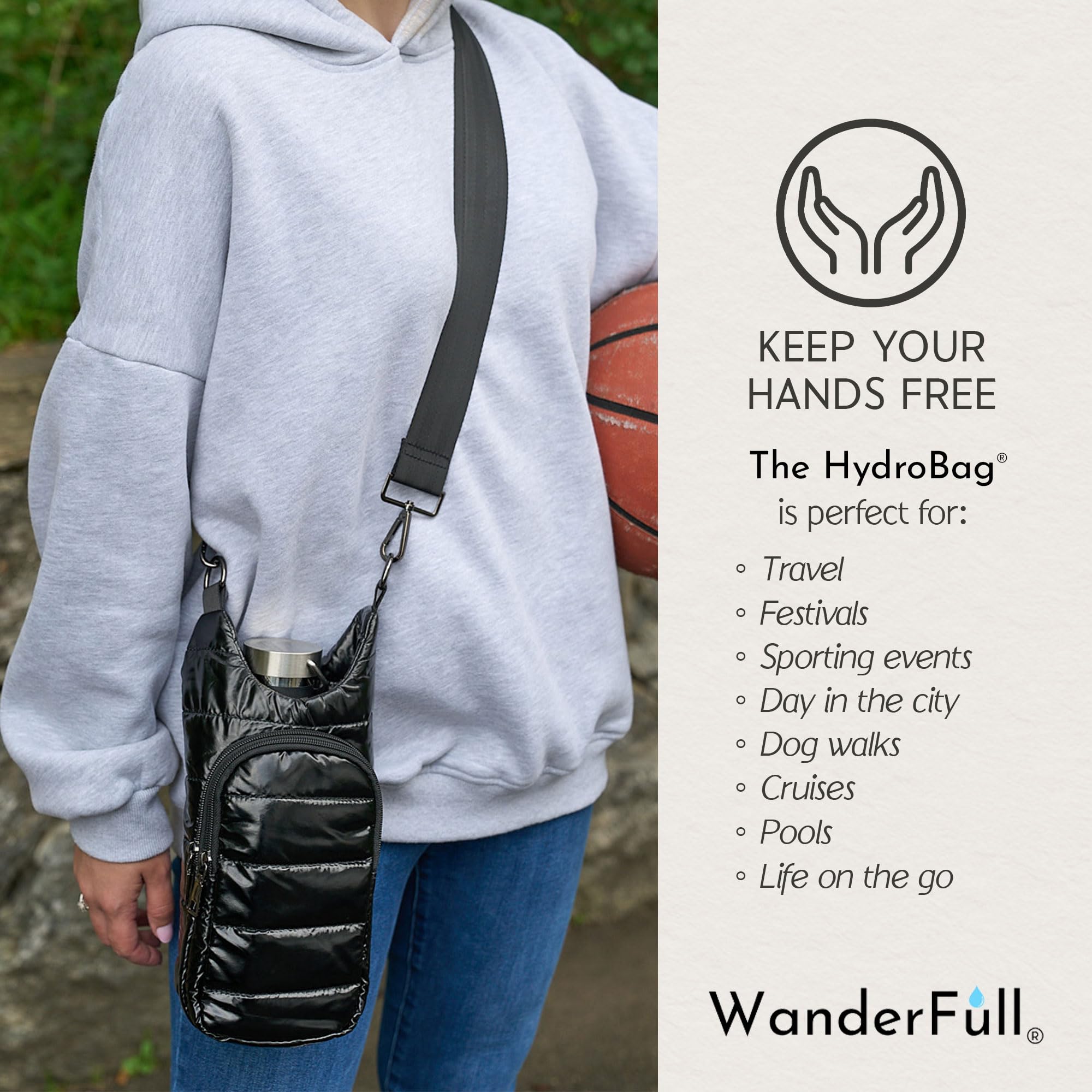 KEEP YOUR HANDS-FREE: Stay hydrated on the go with the patented WanderFull Original HydroBag; ideal for sightseeing, festivals, sports events, travel, or dog walks. Enjoy convenience and comfort without compromising on style.