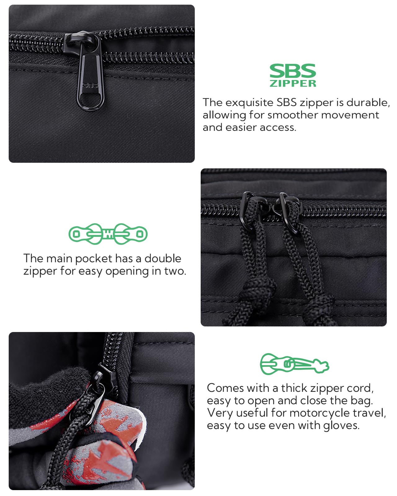 Premium Material & Sturdy SBS Zipper: Hiking waist bag is made of high-quality nylon material, durable and breathable, fine workmanship and tight stitching. Smooth zippers ensure users to quick access to the items, preventing items from falling