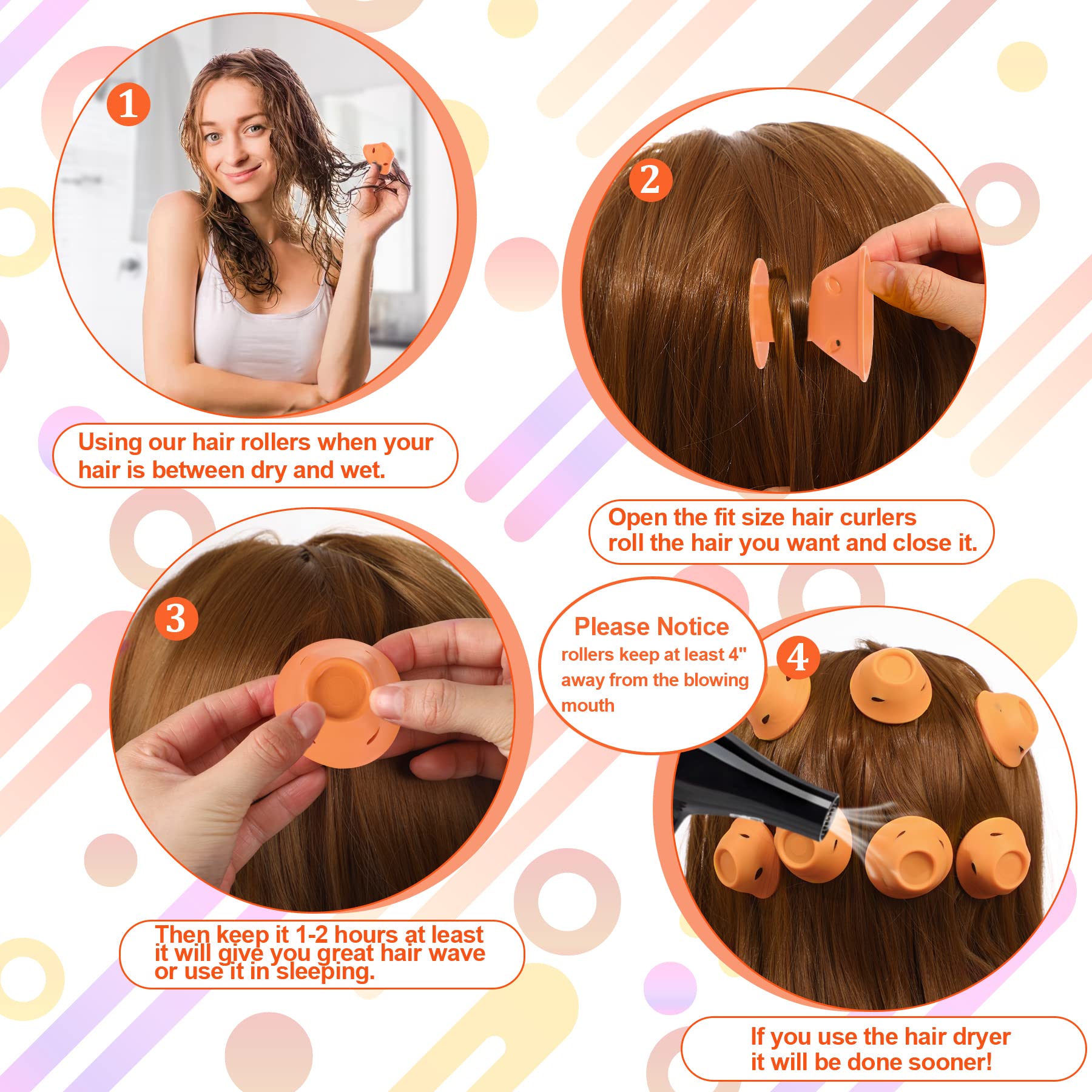 Enough Quantity:You will get 20pcs orange large magic hair curlers and 20pcs small hair curlers in a storage bag, and we also gave you a wig net cap as a present,You can use it to cover your head to fasten the curlers