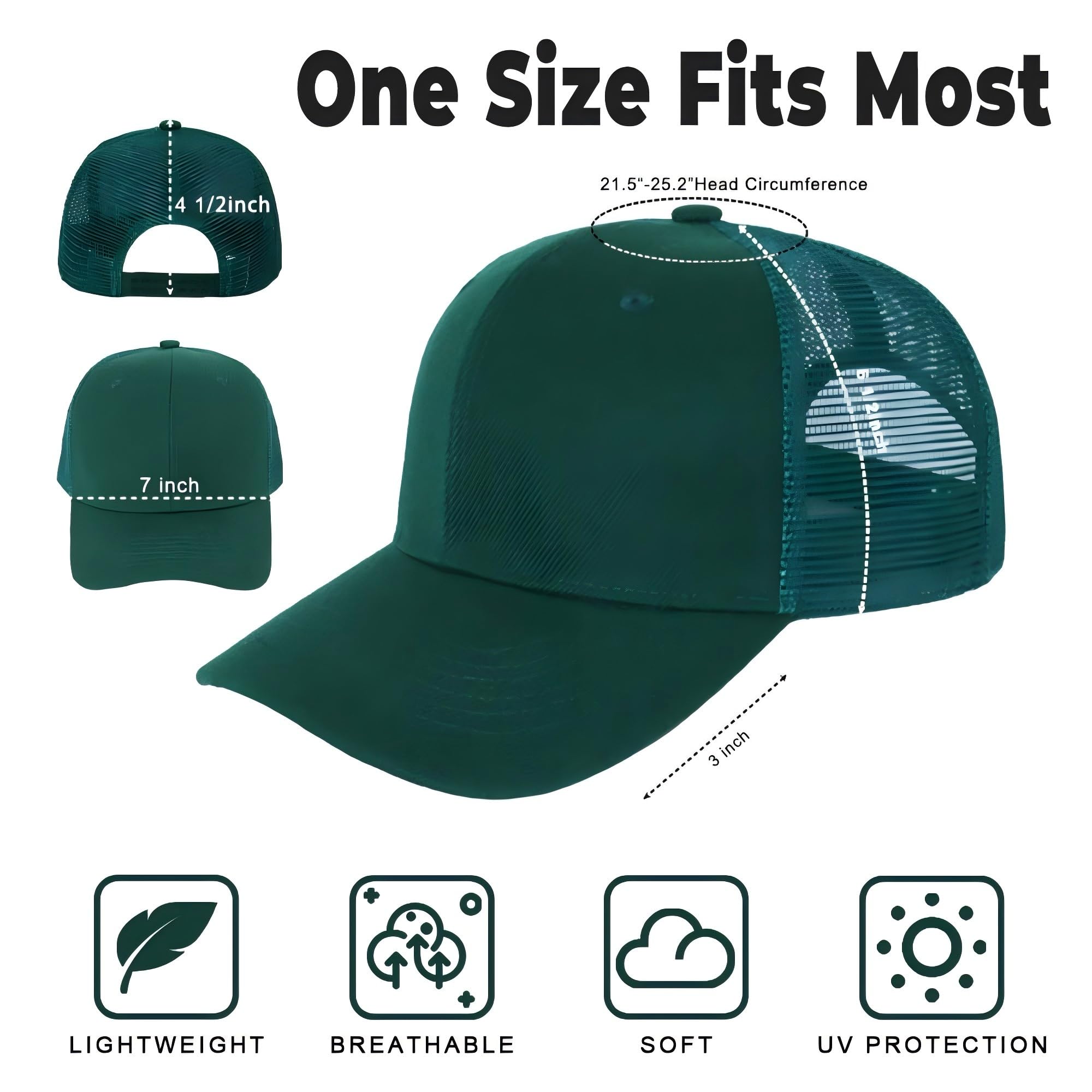 [Comfortable & Lightweight ]: Made from a durable blend of polyester and mesh fabric, our hats are lightweight and comfortable. The front panel and breathable mesh back ensure excellent ventilation , while the brim offers UV protection, making them ideal for outdoor activities.