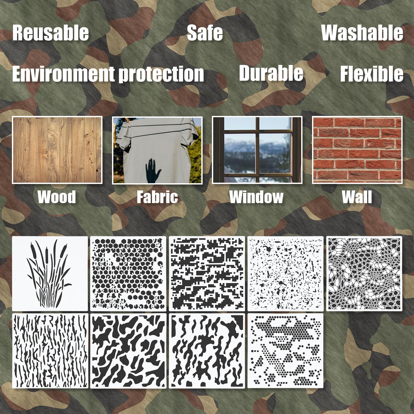 Easy to Use: With these reusable camouflage stencils, paste the stencil on your desired surface and spray paint over them. Reusable and durability, allowing you to use them multiple times without worrying about wear and tear.