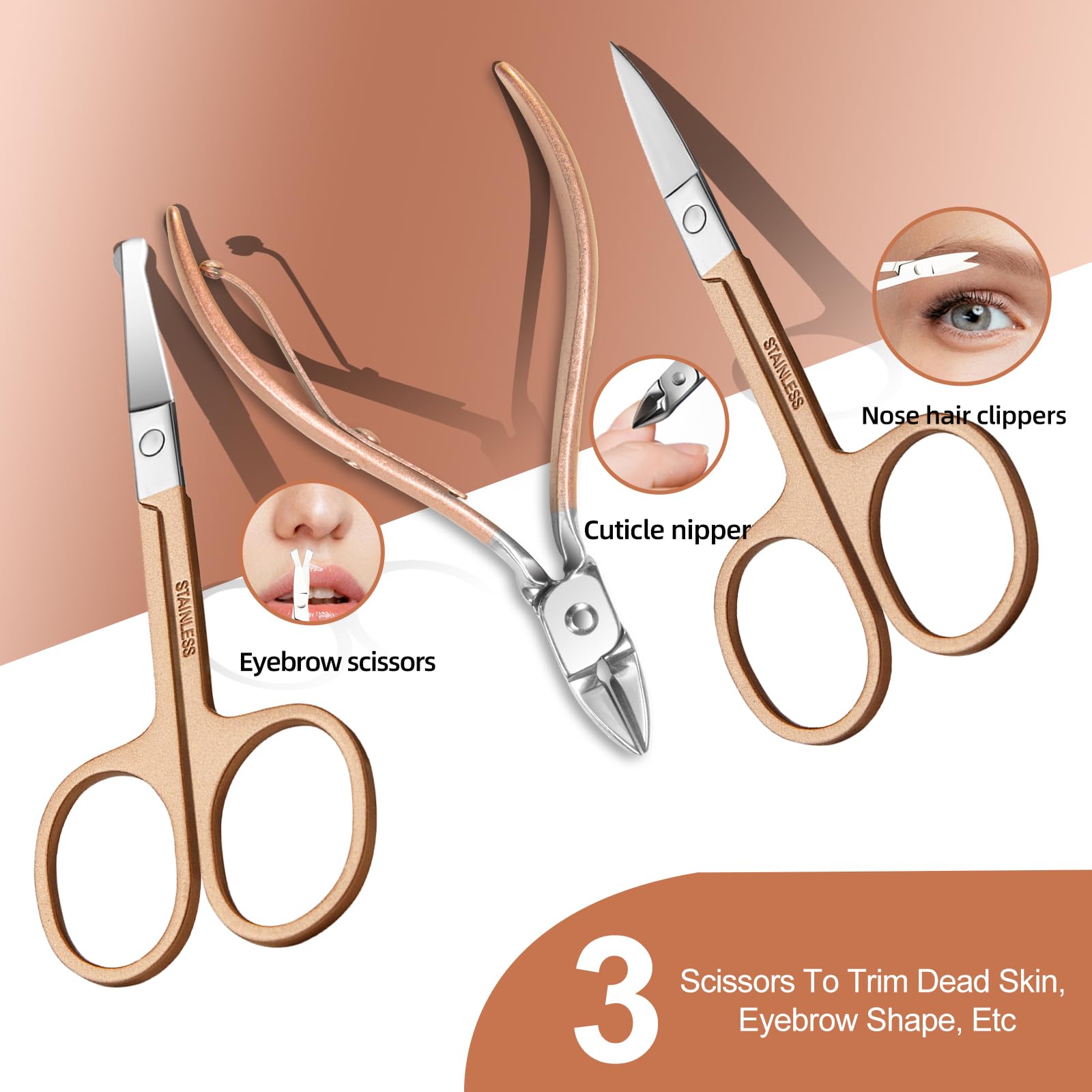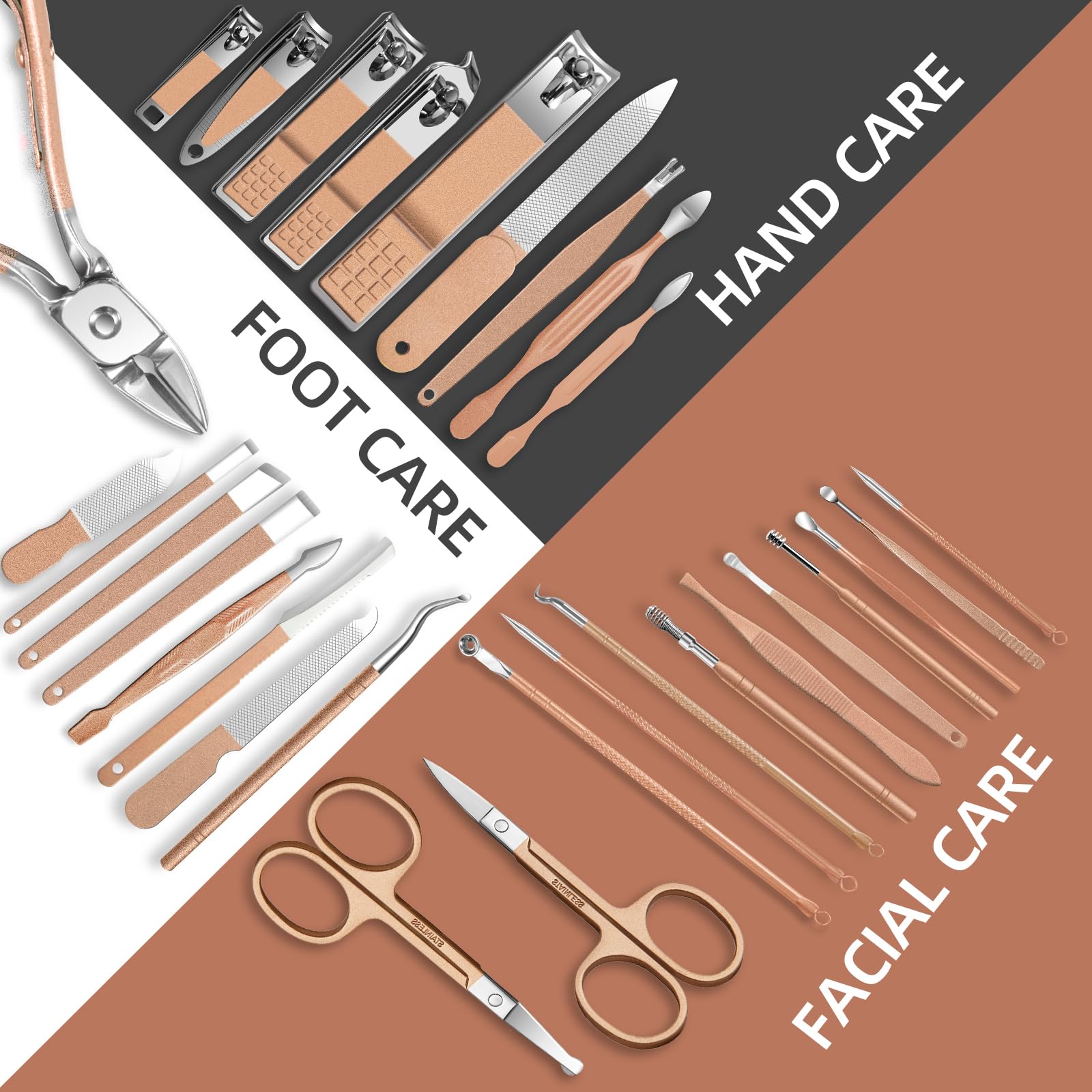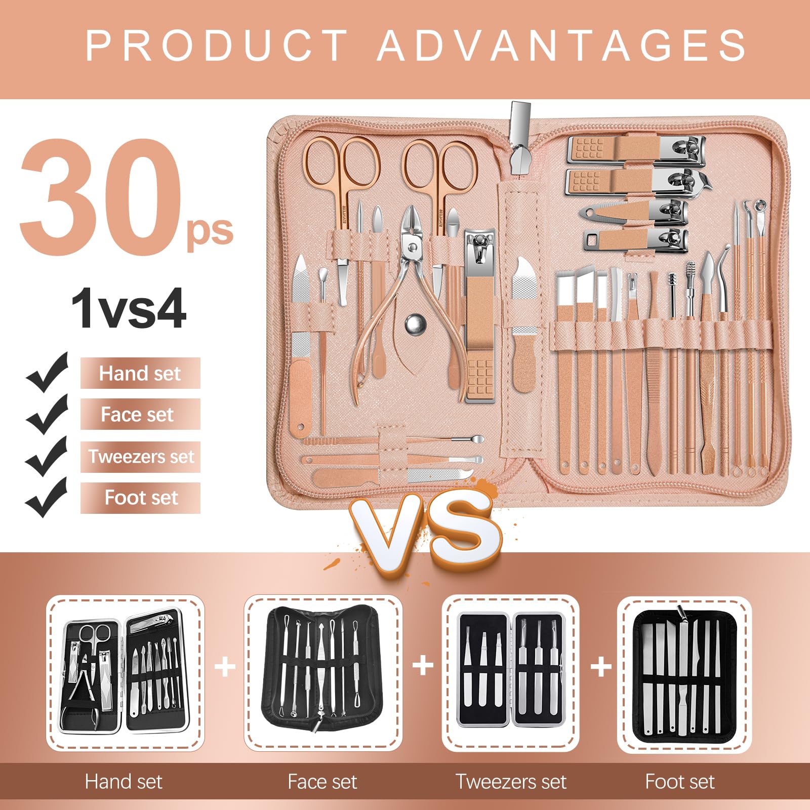 😍【Light Weight and Nail Clippers】: 30 nail care kit all in a portable case, convenient to carry out or just home use. 6.2 inches long and 4.7 inches wide.grooming Nail kit, lightweight in design making it your perfect travel partner, offering exceptional foot, hand and facial grooming tools.you will not want to separate in your travels and also everyday life.
