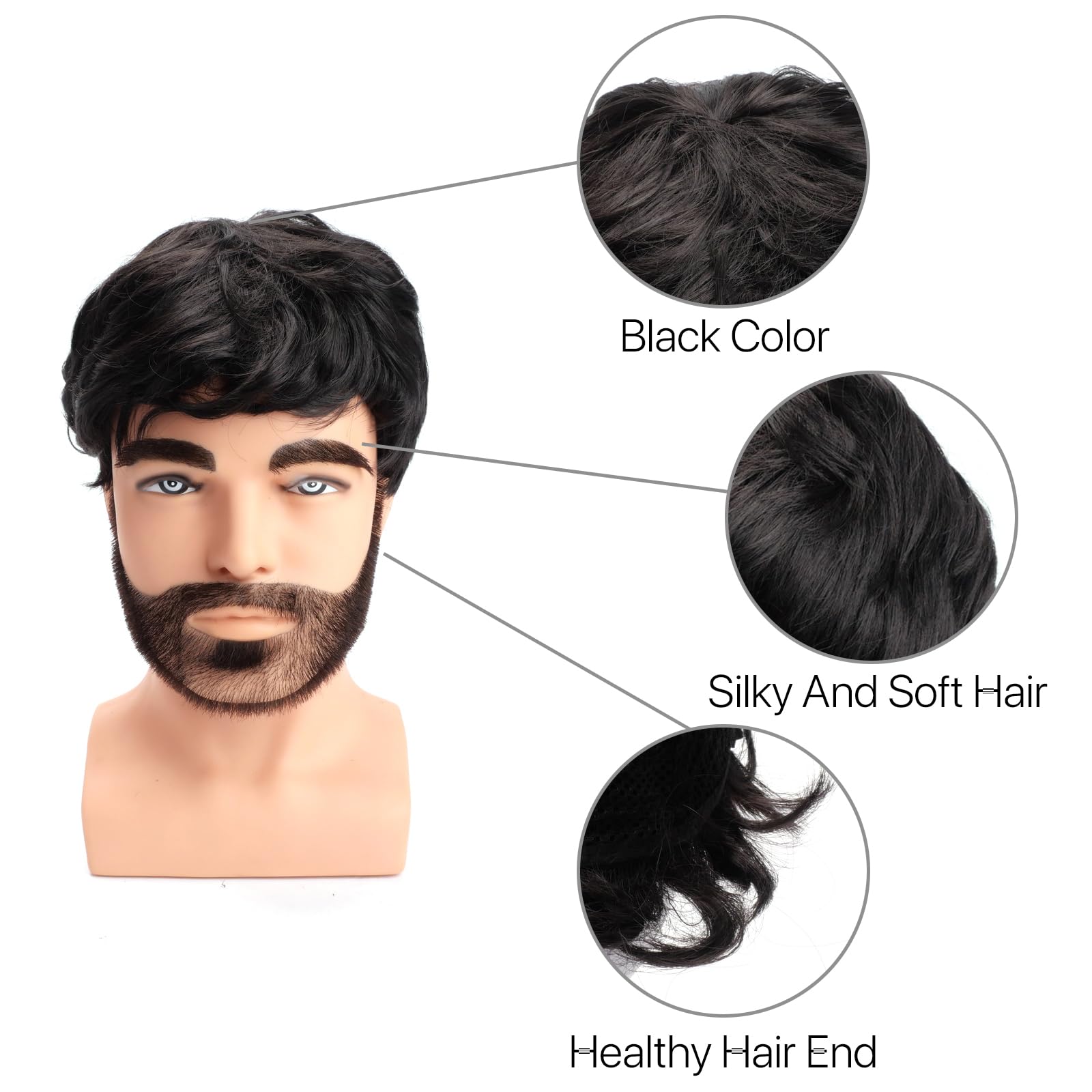 【Comfortable】Our short black mens wig is made with breathable and lightweight materials to ensure maximum comfort.
