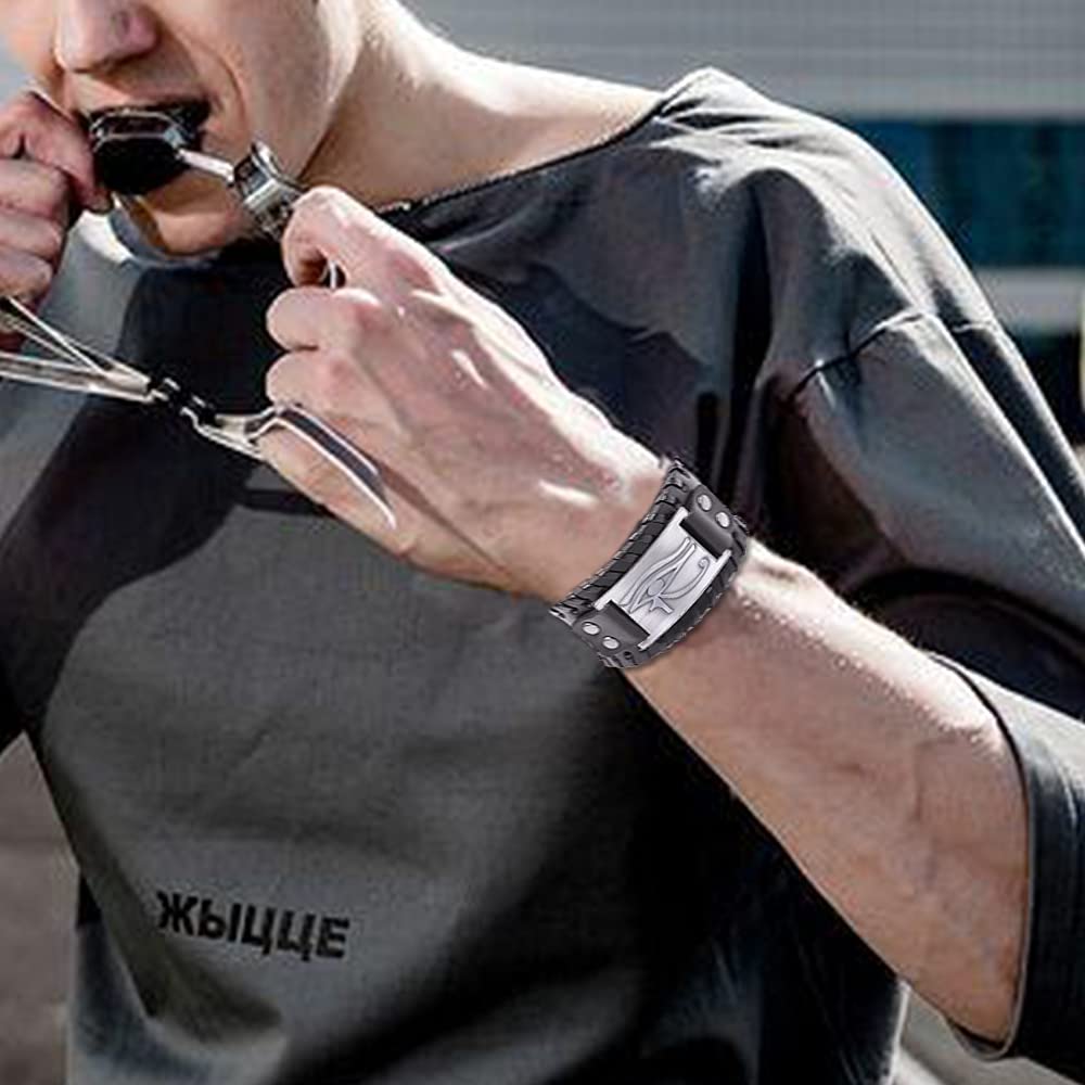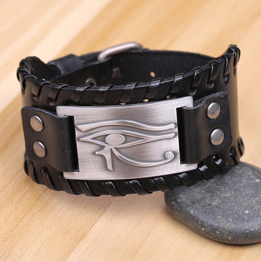 TURTLEDOVE DESIGN - The size of this Egyptian bracelet is 11.5*1.6 inch. This vintage leather bracelet is a perfect combination of metalwork and leather rope chain of a Celtic knot design. The metalwork is engraved Egyptian amulet, which is a symbol of protection.