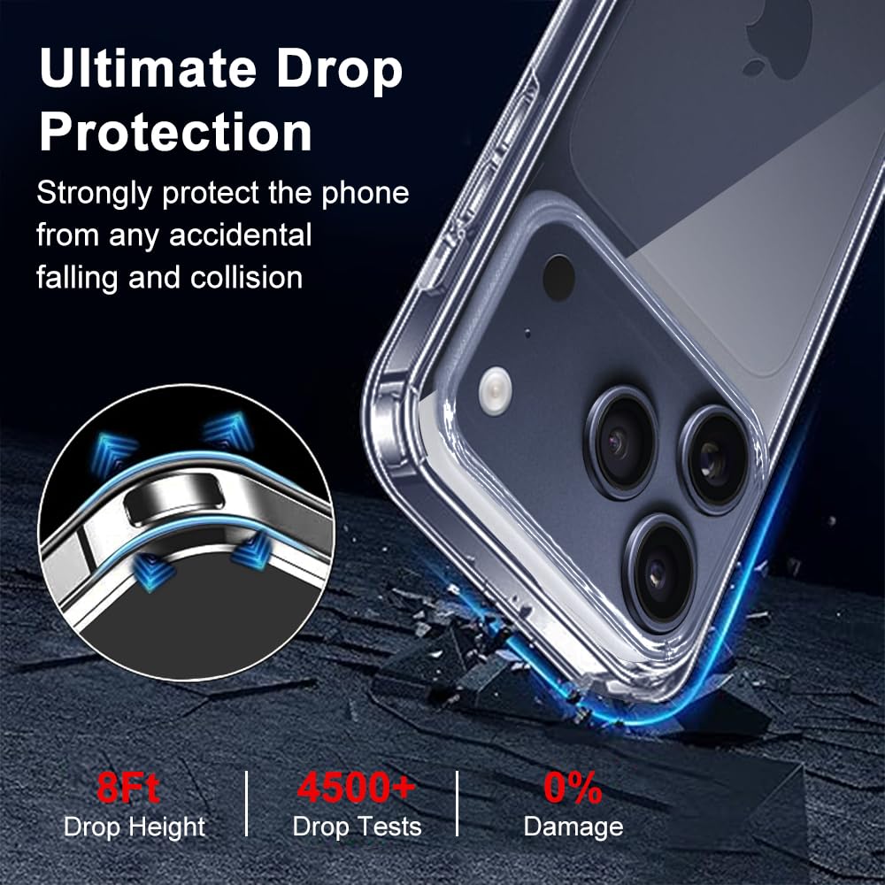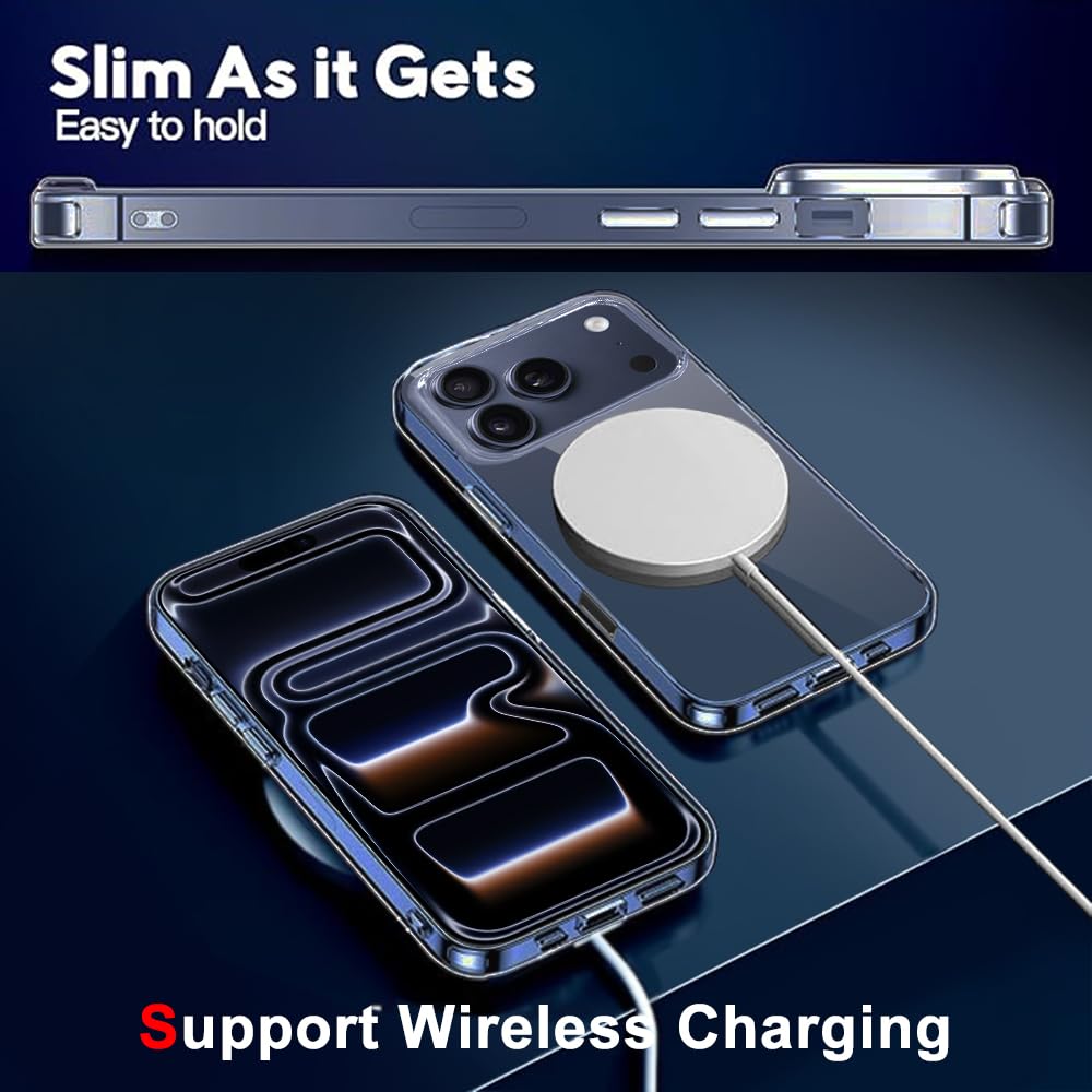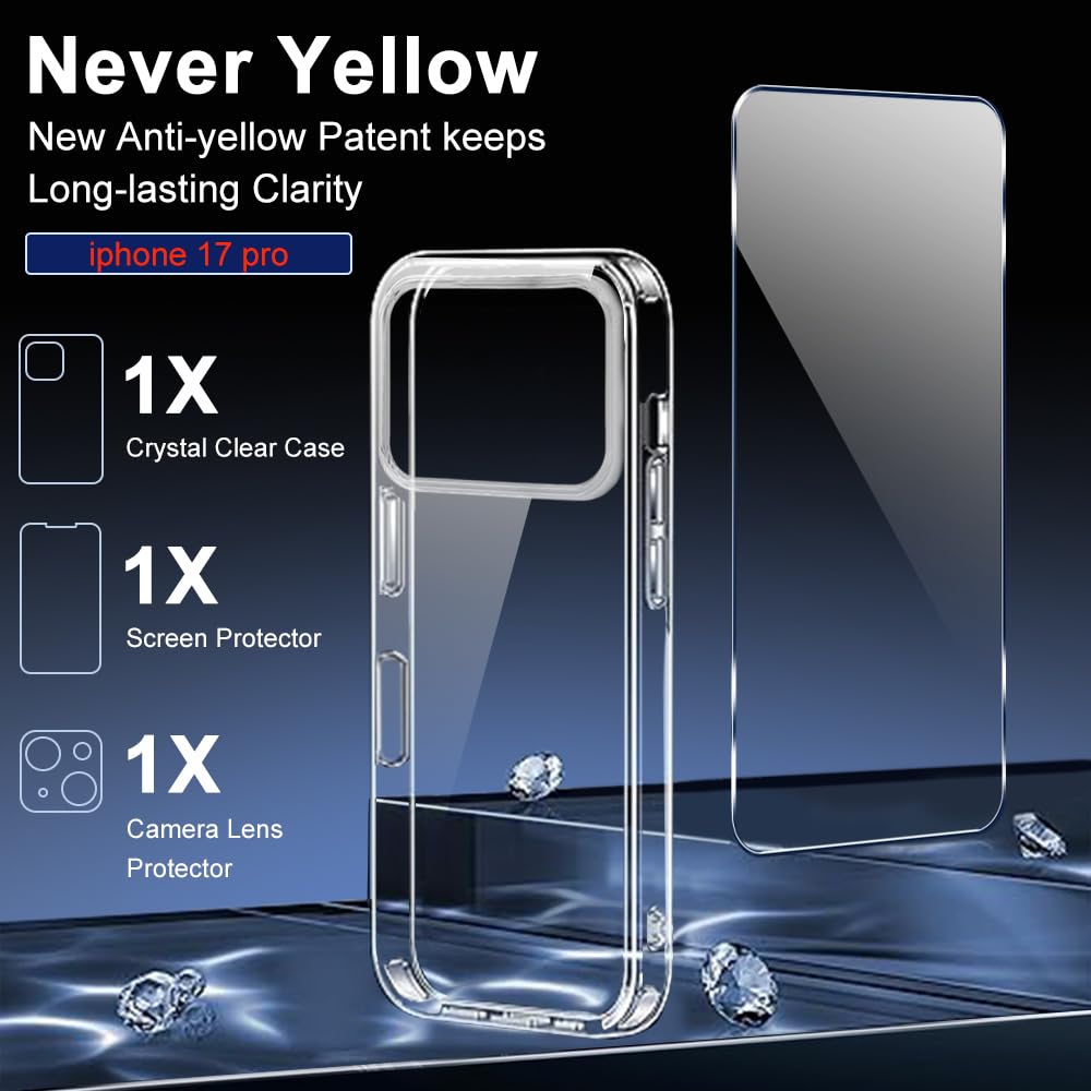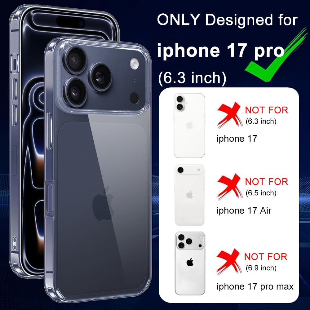 👍【Compatibility】Only Perfectly fits your iphone 17 Pro 6.3-inch. Supports wireless charging. it comes with 1 x High-Quality 9H tempered glass screen protectors and 1 x camera lens protectors.
