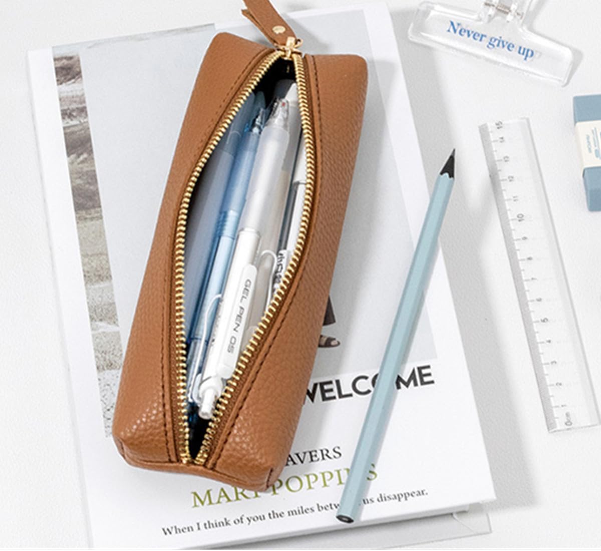 Large space : This leather pencil case has lots of space for your need. It is not only lightful but also can takes more than 20 pencils .Size(20*6*3CM)
