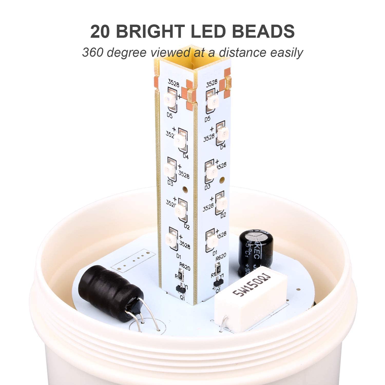Includes an internal audible alarm buzzer (hi-pitched tone) of 100+dB (at 1m) that is synchronized with the light operation for conspicuous effect