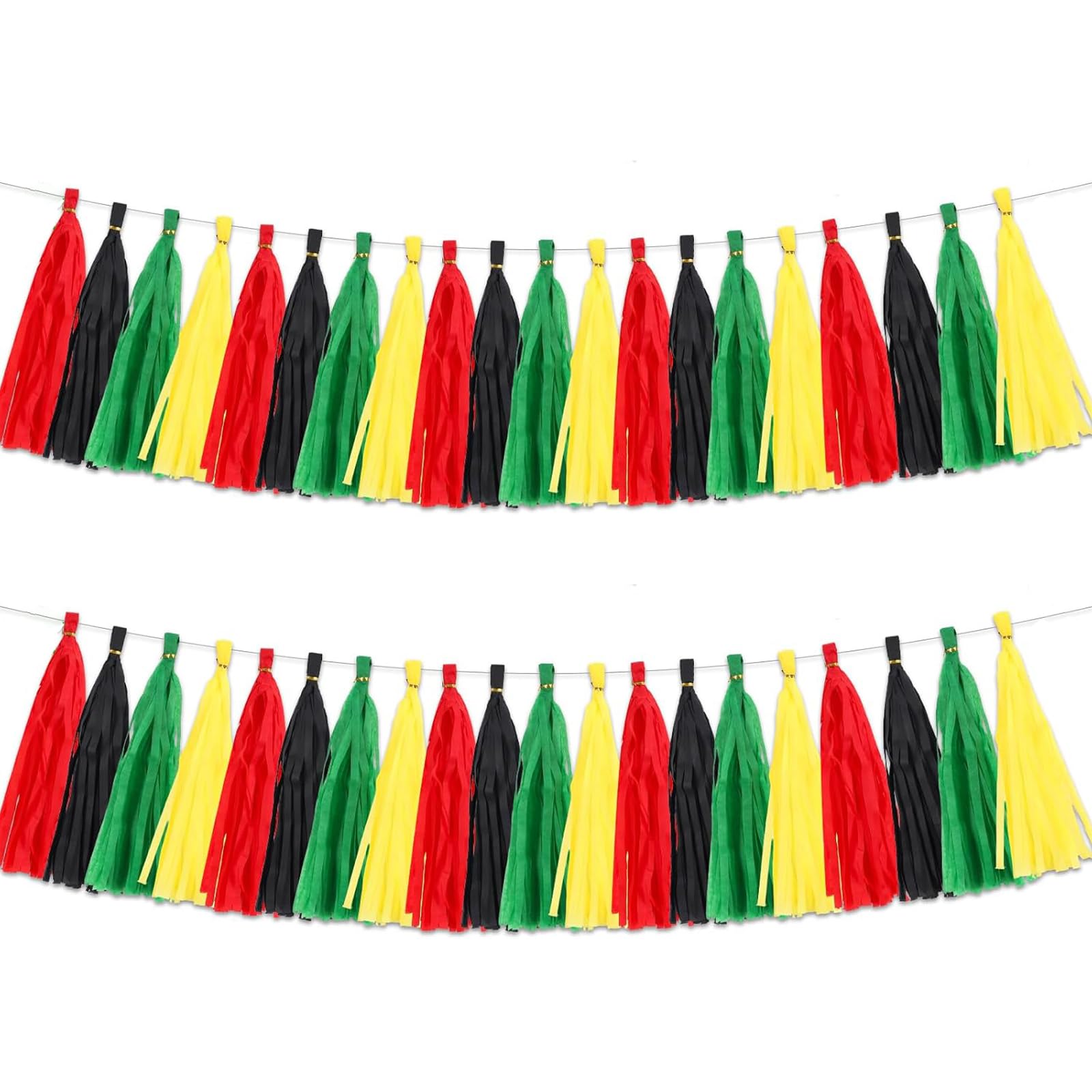 Black Red Green and Yellow Tassel Garland Banner Paper Tassels
