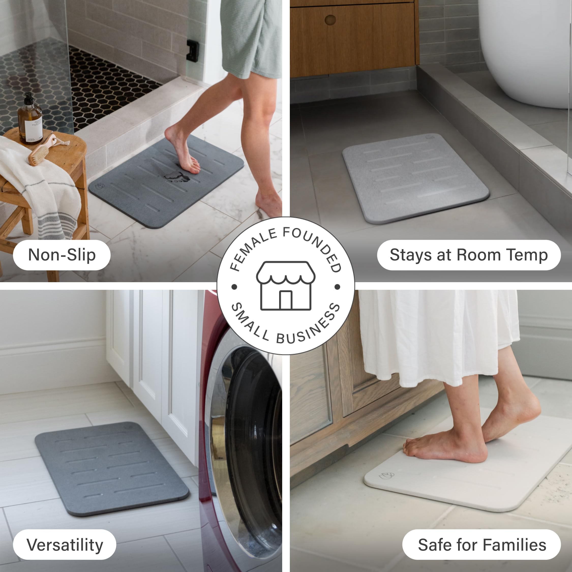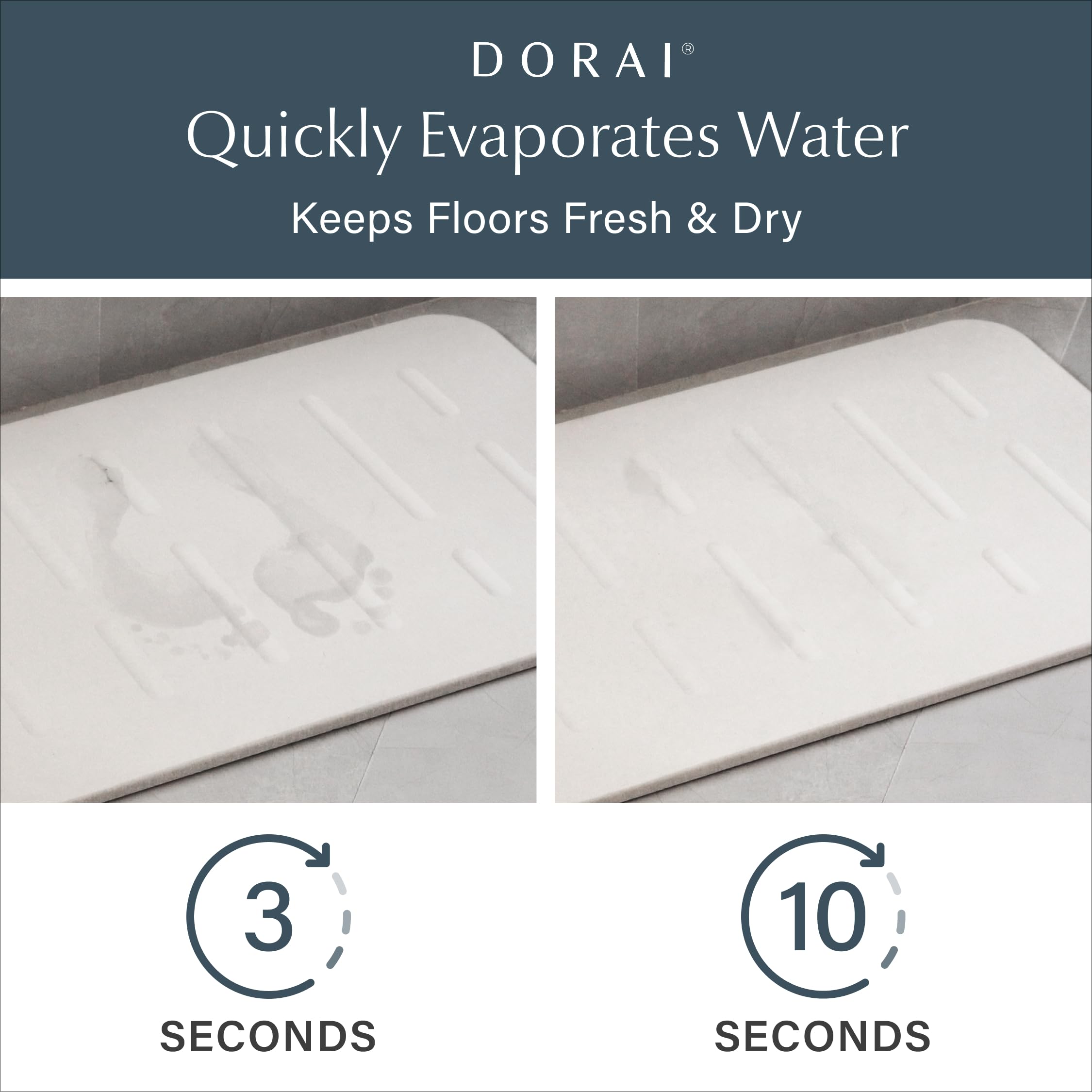 THE ORIGINAL STONE BATH MAT: Upgrade your bathroom with the Dorai Stone Bath Mat, crafted from diatomaceous earth and recycled paper. Our instant-drying bathroom mat keeps floors dry with a chic design.