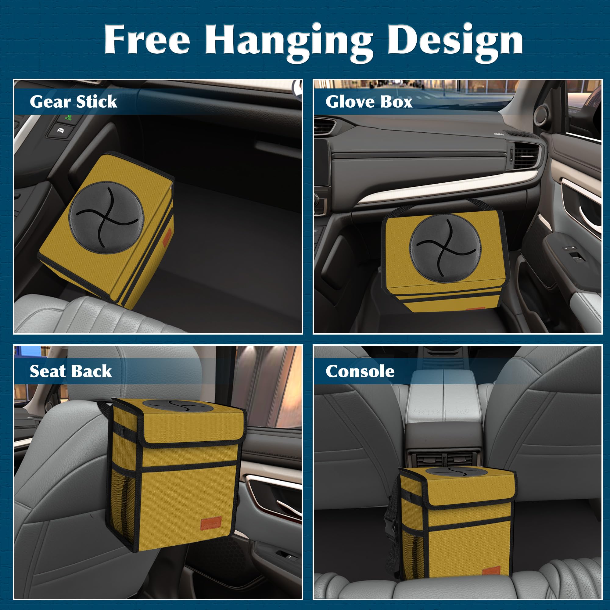 【PREMIUM MATERIAL 】This car trash bag is made of waterproof and durable 600D high-quality material, the inner material of the car accessories women is a waterproof and easy-to-clean PEVA lining. You can put it directly in the garbage, or put a disposable bag inside, and use two side clips to fix the handle of the bag, just keep everything clean.