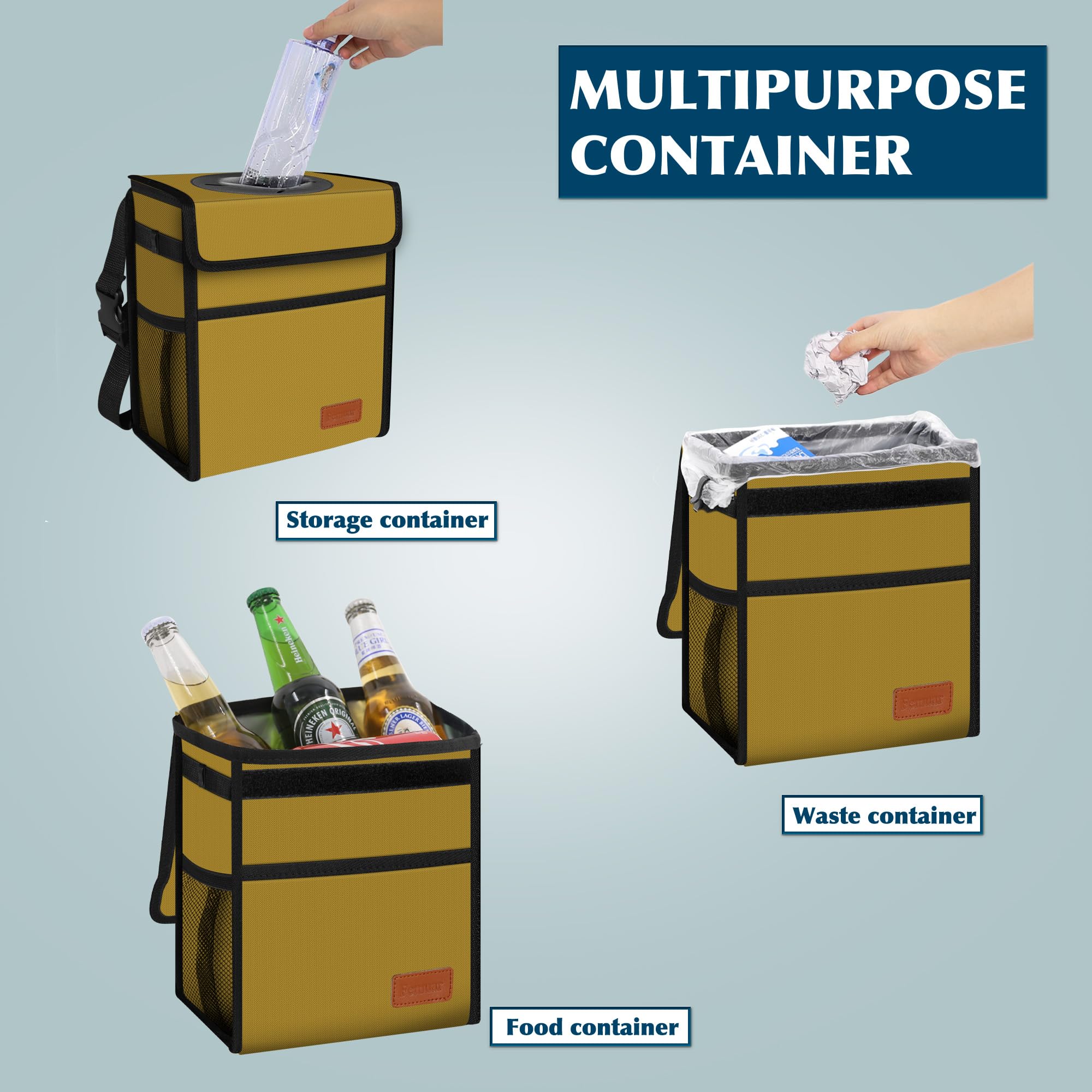【THOUGHTFUL DESIGN 】Our car trash bin with soft lid that is a rubber X-shaped opening and velcro seal can be loaded with tissue paper, fruit peels, and the bottle can be closed or even cover up the waste and keep the internal smell without lifting the lid.