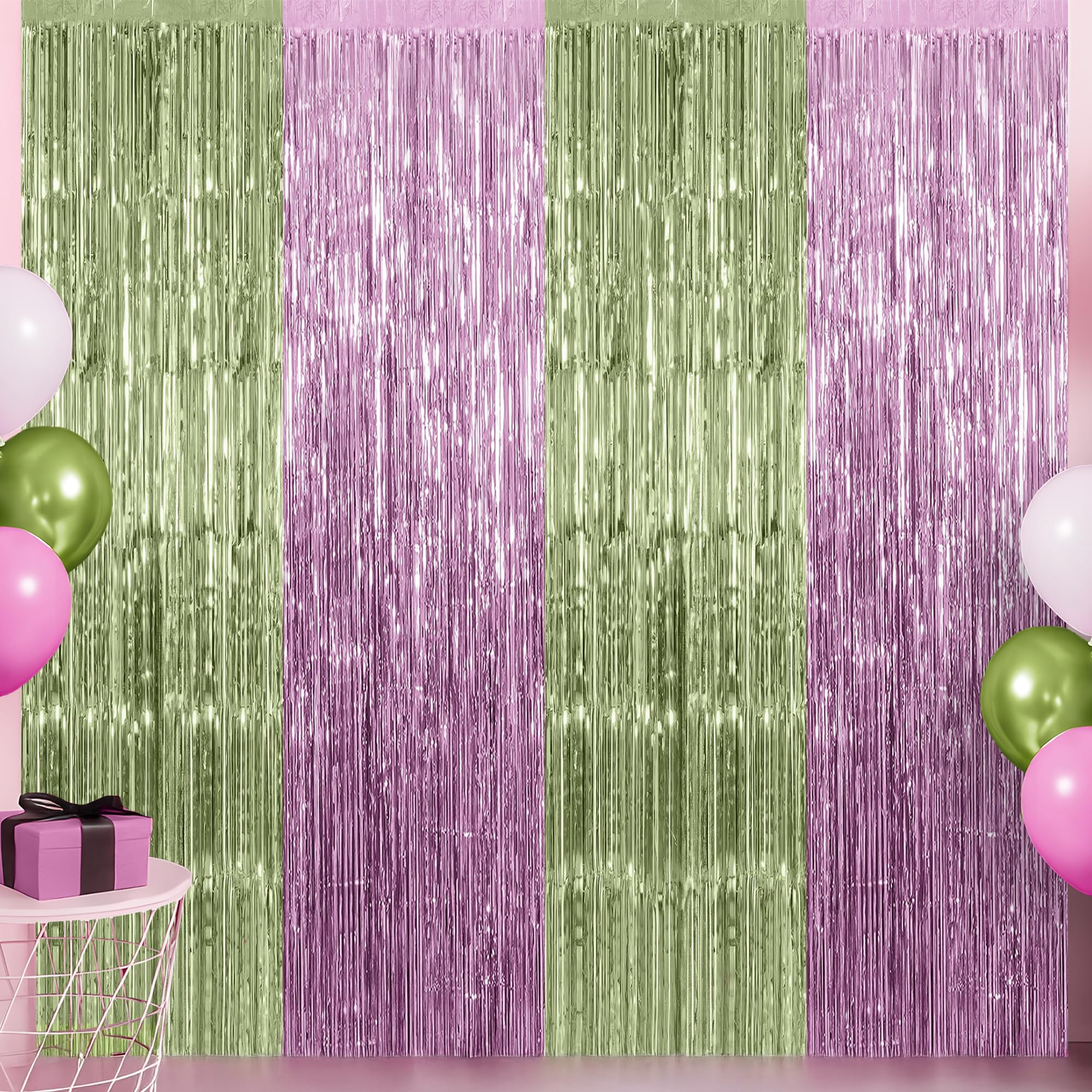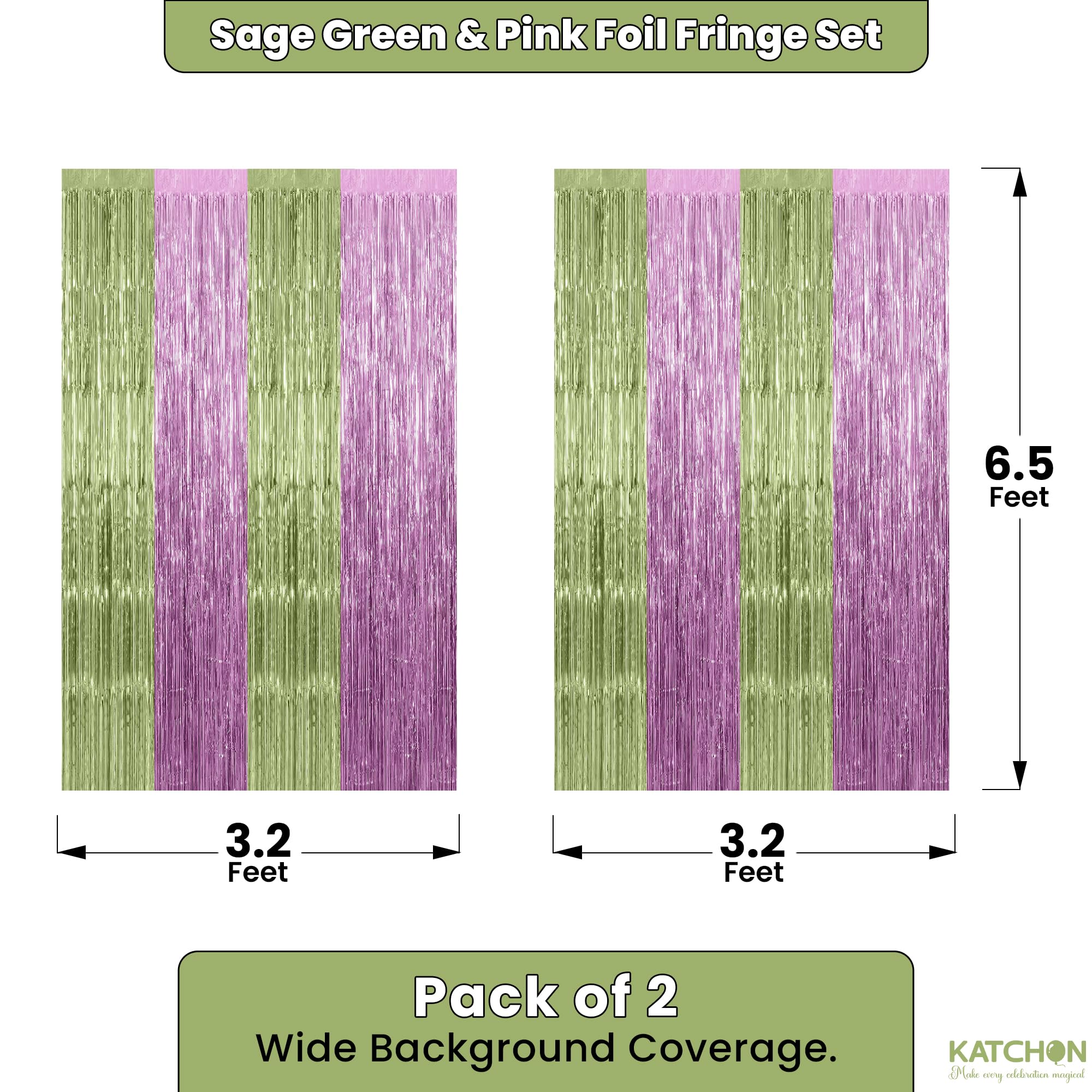 PERFECT SIZE BACKDROP CURTAINS – Our sage green & pink fringe backdrop curtain set includes 2 pcs foil fringe curtains (6.5x3.2 Feet each), designed to instantly transform any space. Use as birthday decorations, bridal shower backdrop, wedding backdrop, tinsel curtain, fringe backdrop curtain, foil fringe curtains, sage curtains, or shower curtain sage green to match any theme like pink and green birthday decorations, anniversary decorations romantic, pink happy birthday decorations, fringe curtains party decorations, bachelorette decorations, girl birthday decorations, pink birthday decorations.