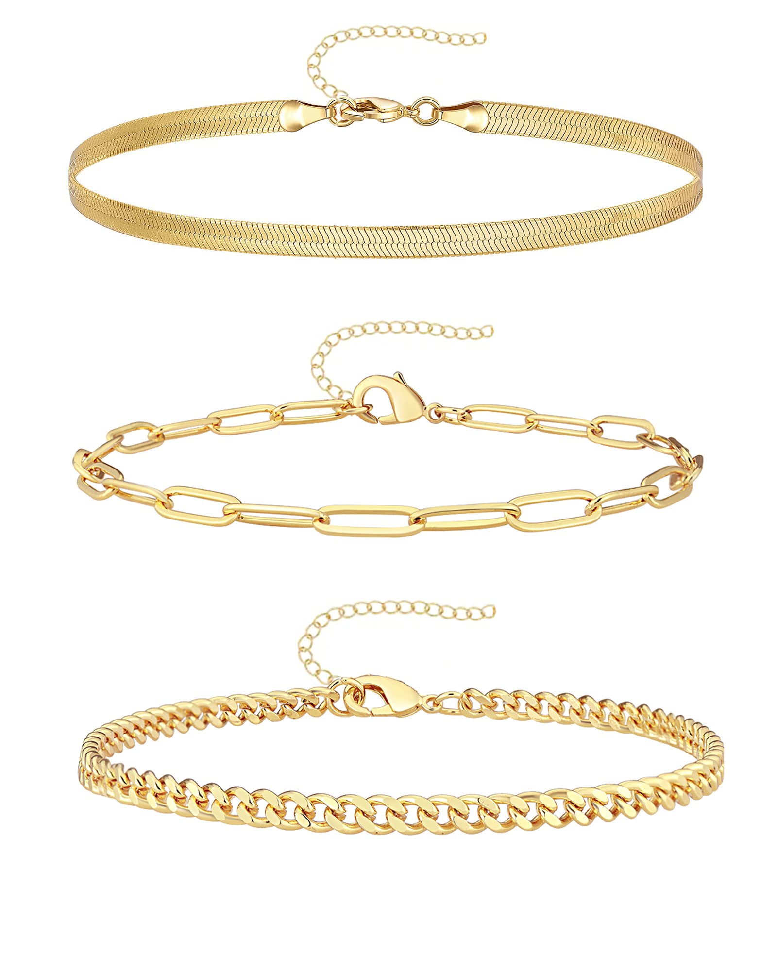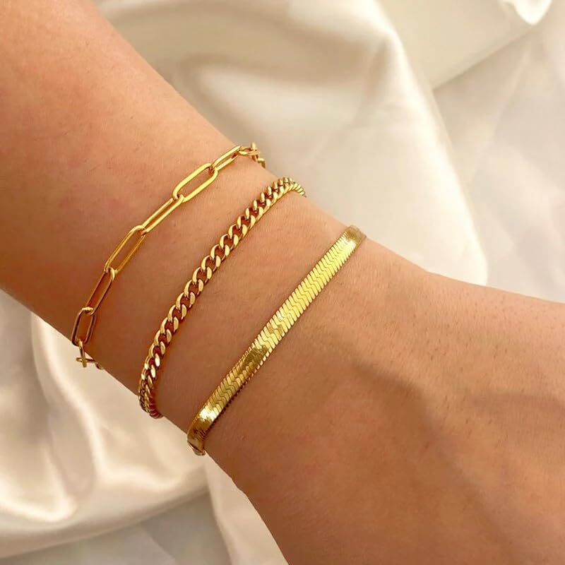 Separate layered bracelets:This stackable bracelets for women consists of a 3 style chain bracelets. Including paperclip link chain bracelets/snake chain bracelets/cuban link chain bracelets. You can wear all of them or separate. You have a choice how you wear them for your everyday