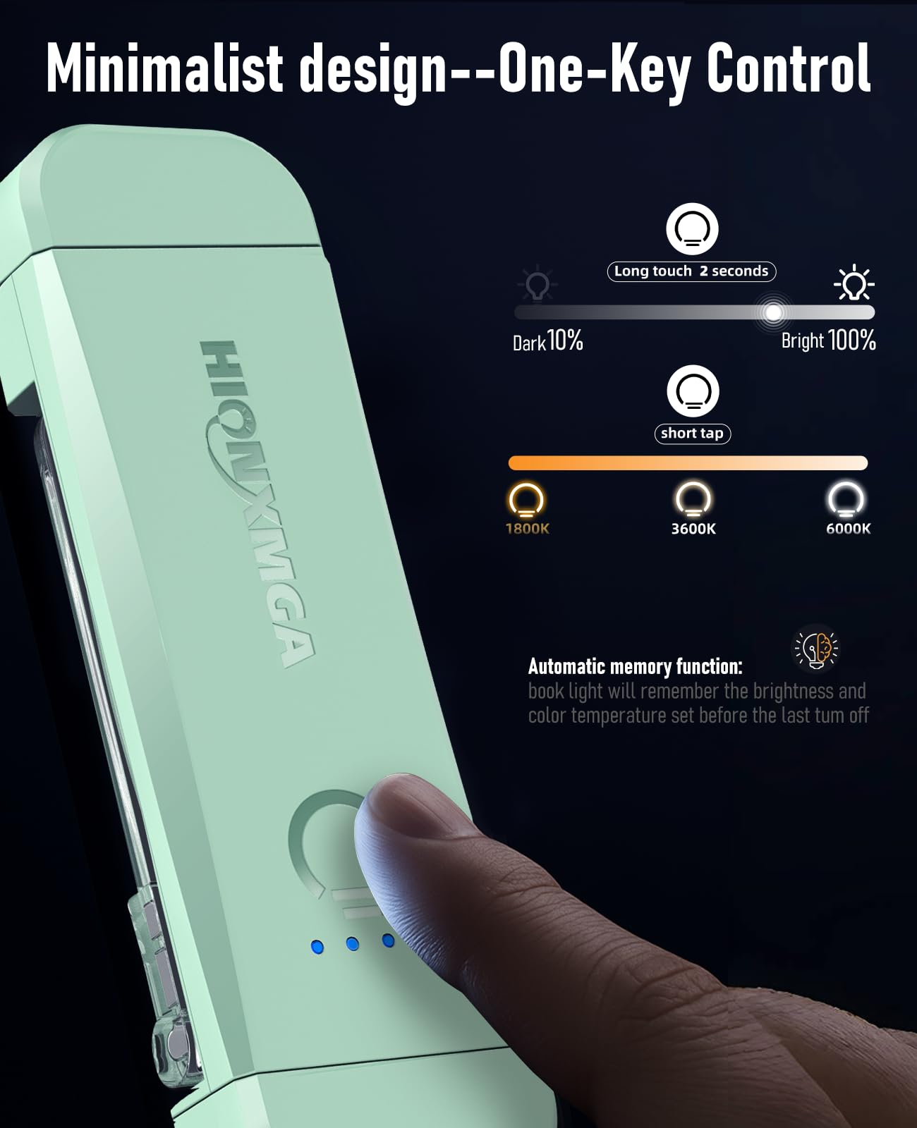 [One-Button Touch Screen Control & Silent Design]:This 2-in-1 clip on book light was designed by Swedish designer Sam,who pursues minimalism. It has eliminated the tedious traditional physical buttons and features a simple one-click touch screen control, allowing you to easily operate the book light at night.This booklight touch screen control makes all operations silent,so you don't have to worry about disturbing your sleeping partner.What a perfect reading companion!