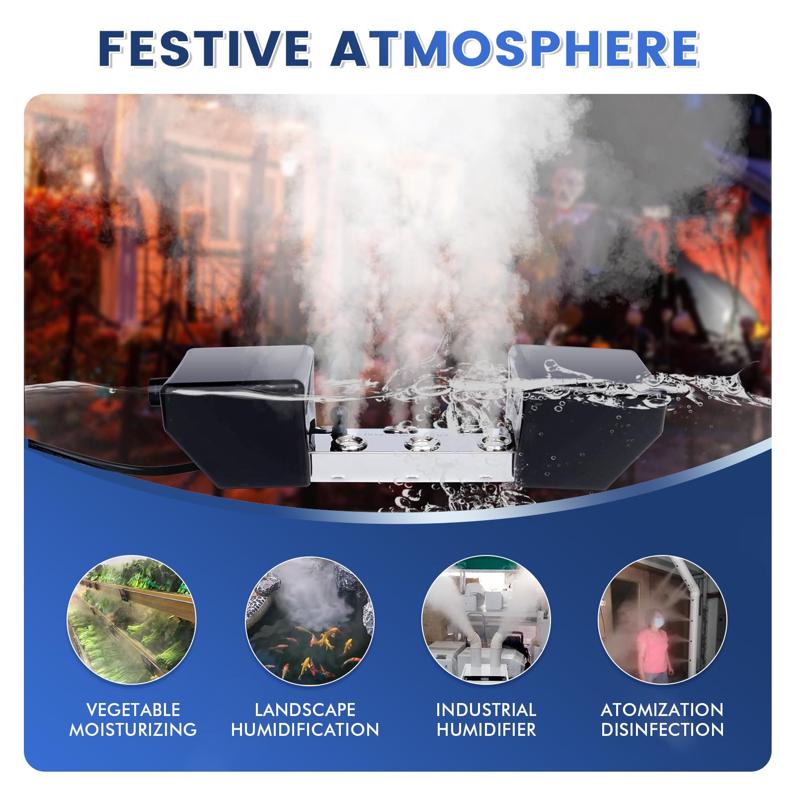 FOG MACHINE THAT USES WATER: 10 head mist maker can quickly create fog for Large Room stage, wedding, festivals party like Halloween.Also can decorate landscape,mini water fountain, atomizer, rockery, pond, indoor fountains & accessories etc