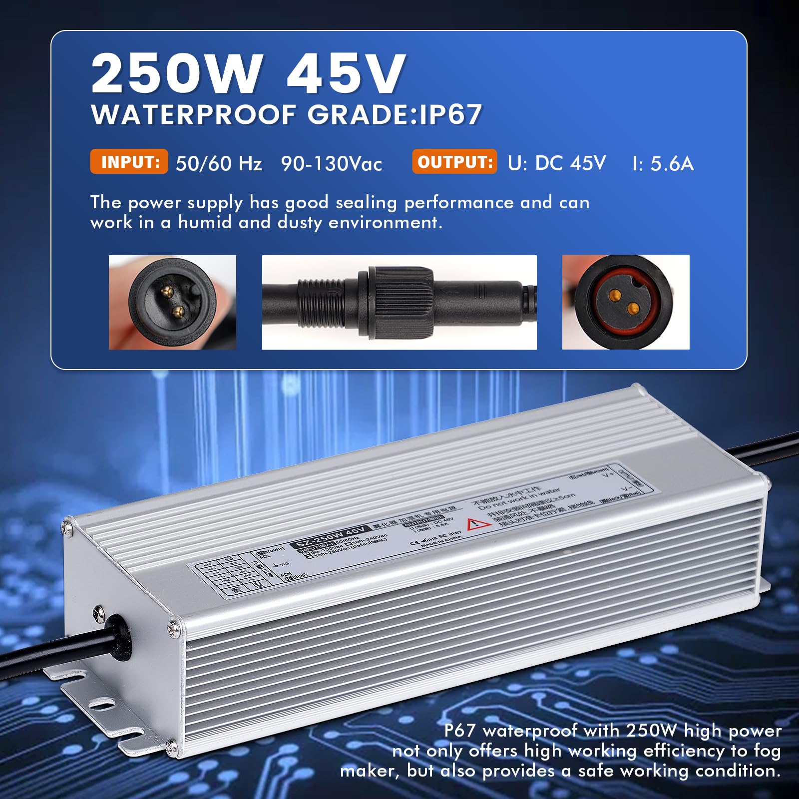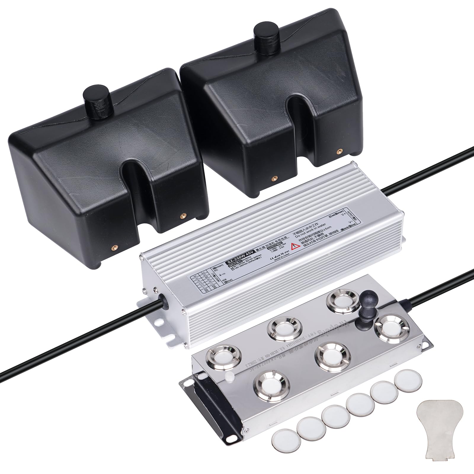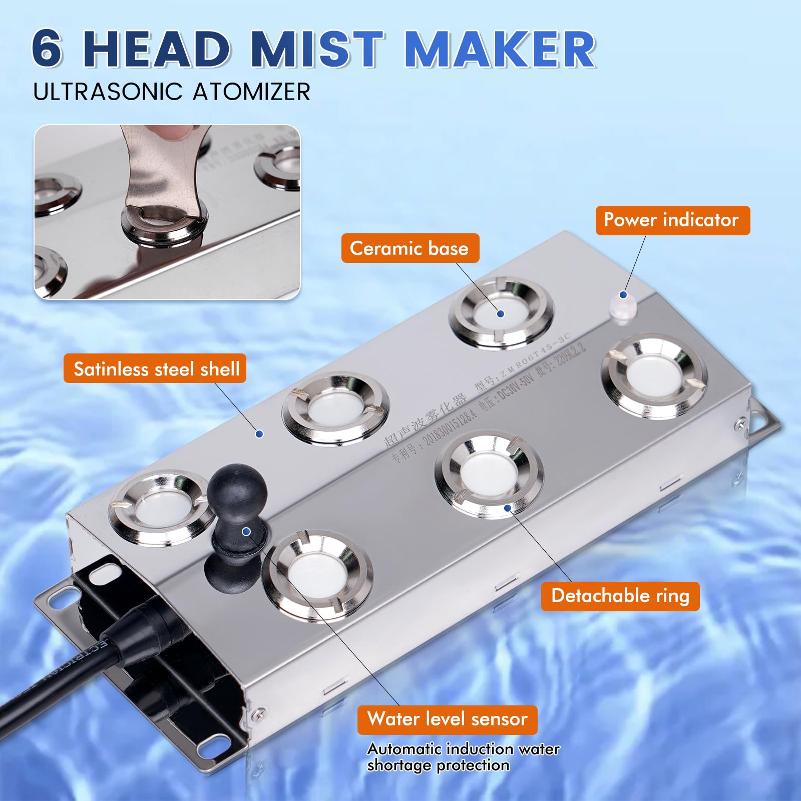 HIGH SECURITY: The mist maker is used at a water depth of 6-7cm,It will auto off when lack of water.If water over 7cm, the floating buoy can keep mister foggers in the correct water level. High temperature protection, above 131℉ stop working to avoid damage. The 250w power supply is moisture-proof and waterproof, but do not immerse in water