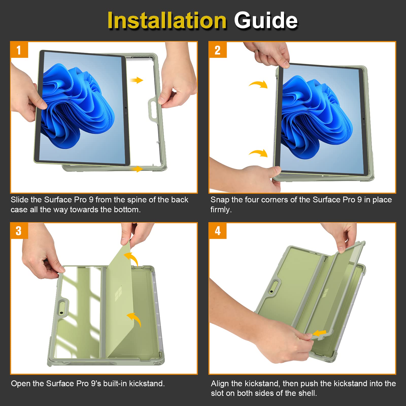 Compatibility - Designed for New Microsoft Surface Pro 11th Edition AI (2024 Release), Surface Pro 10 Business (2024 Release) and Microsoft Surface Pro 9 5G (2022 Release) 13 inch tablet ONLY. NOT FIT for 13 inch Microsoft Surface Pro 8 / Microsoft Surface Pro X , 12.3 inch Microsoft Surface Pro 7+ / Pro 7 / Pro 6 / Pro 5 / Pro LTE tablet or any other model. Works with or without the surface pro type cover keyboard (keyboard not included). (Not Compatible with Surface Slim Pen 2).