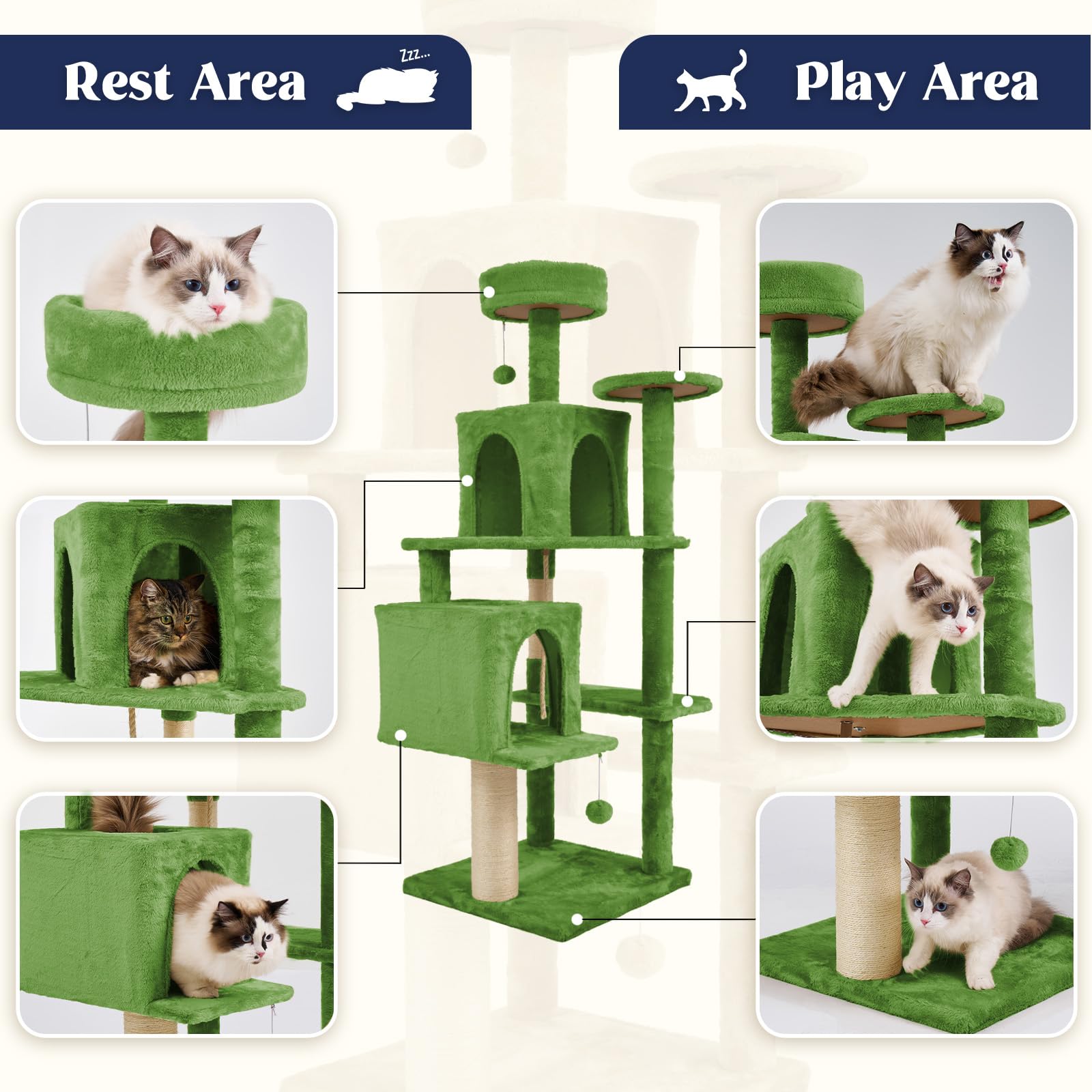 【MULTI FUNCTIONAL DESIGN】Cat furniture has more entrances and exits for cats, and the top cat cave can rotate 360°. Cat Tower equipped with a lookout, cat house, and springboard, increasing the activity space for cats, promoting their exercise and vitality, and satisfying their climbing instincts and curiosity.