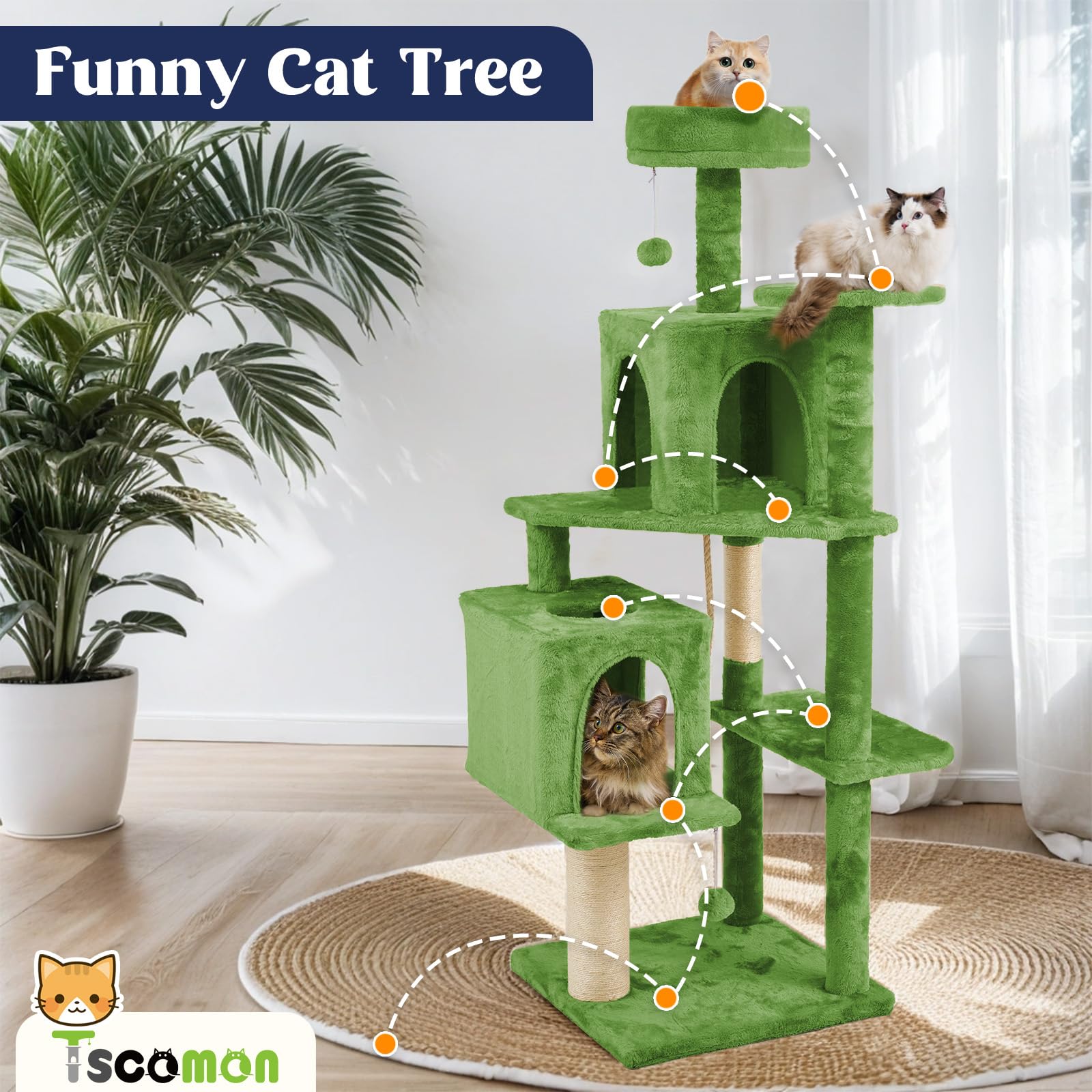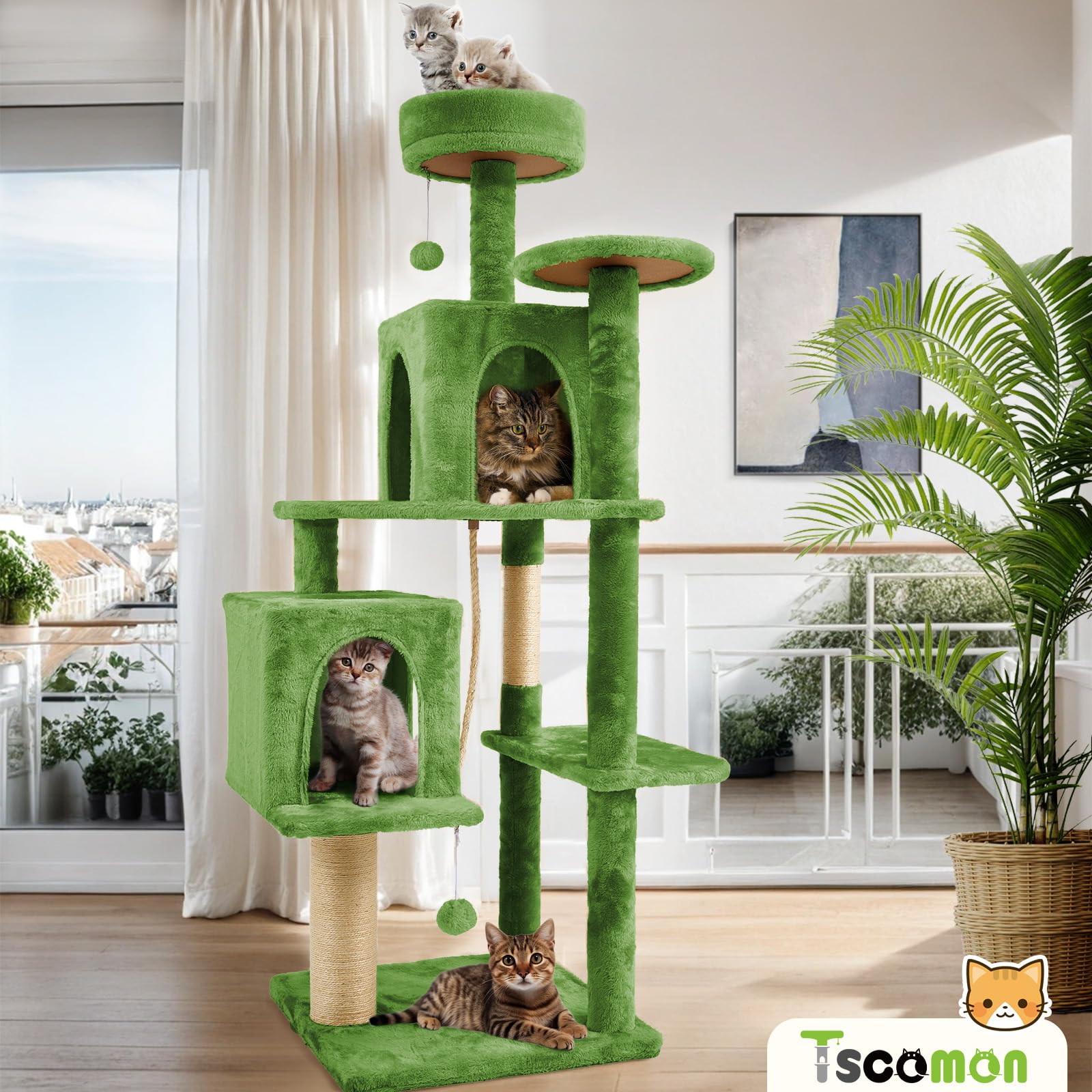 【HIGH QUALITY MATERIALS】TSCOMON cat tree features a plush covering with 600GSM softness, ensuring comfort. All scratching posts are made from durable natural sisal, offering lasting quality.