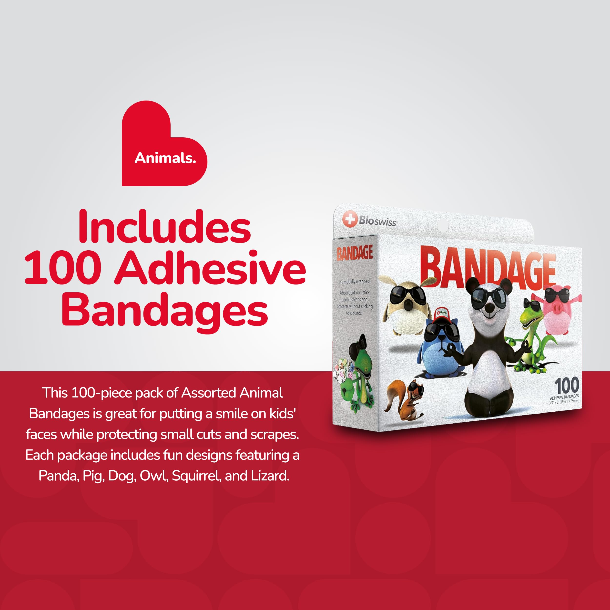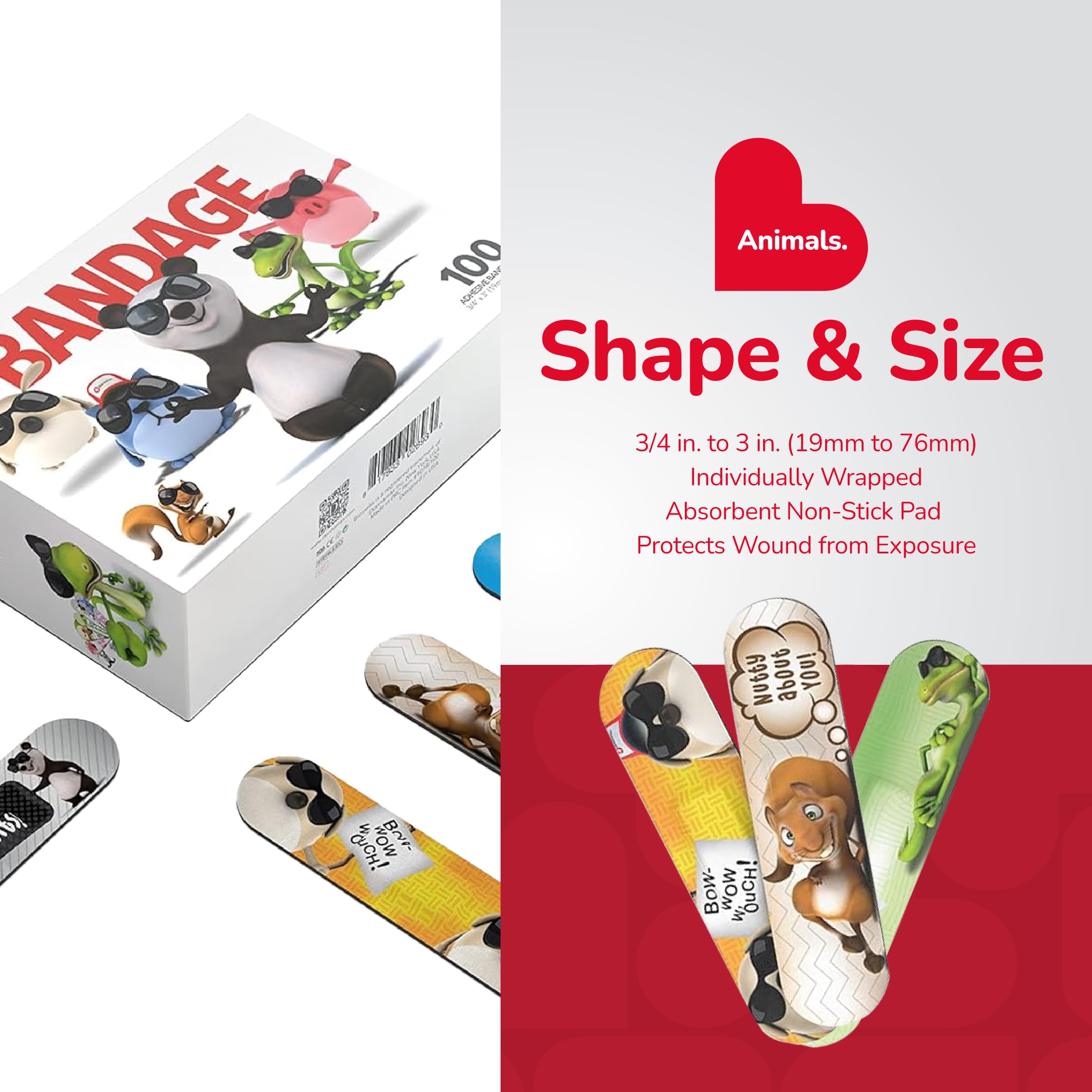ASSORTED BANDAGES: Our 100 piece adhesive bandages variety box helps protect cuts, scrapes, and minor wounds while making healing less stressful; bandages come in 6 assorted styles