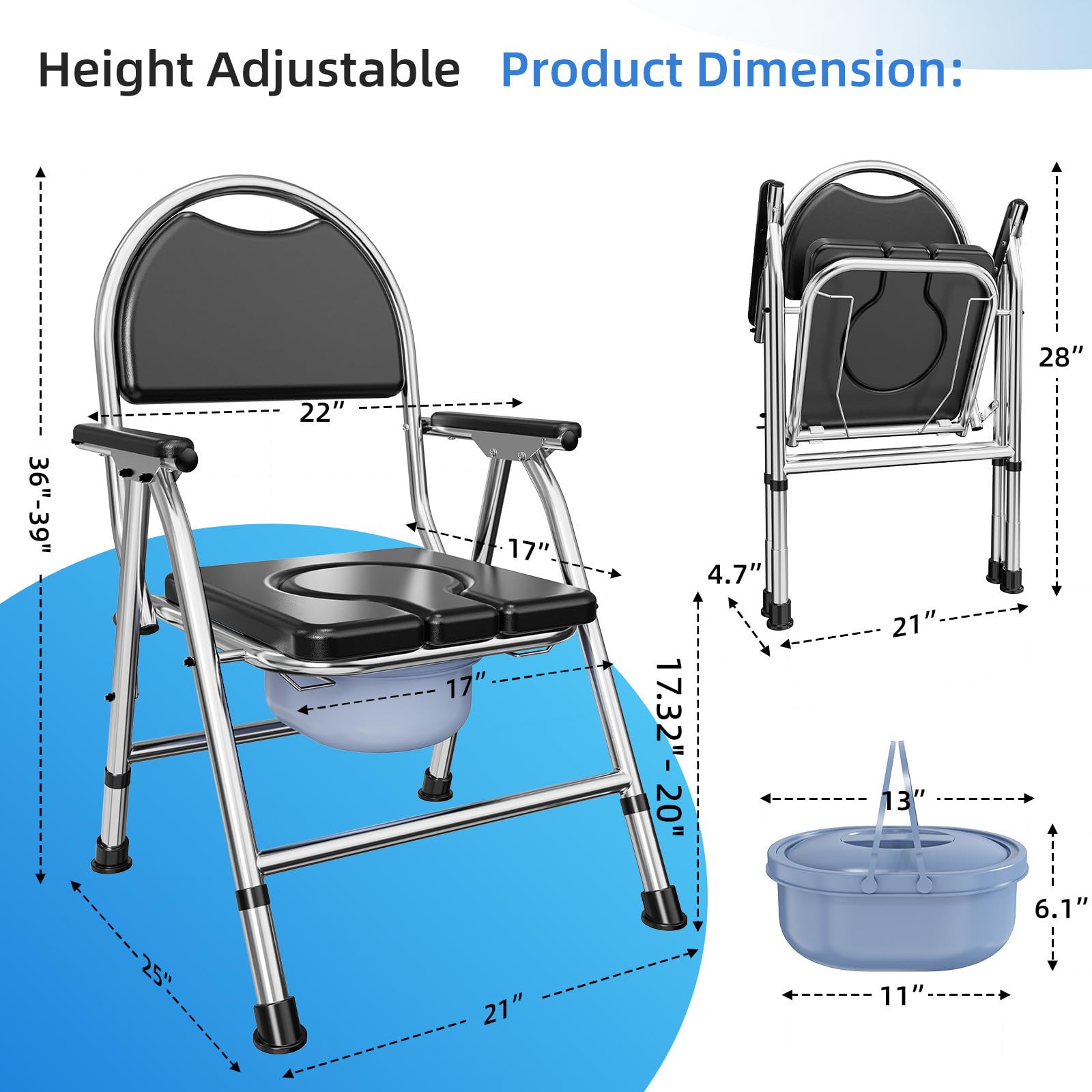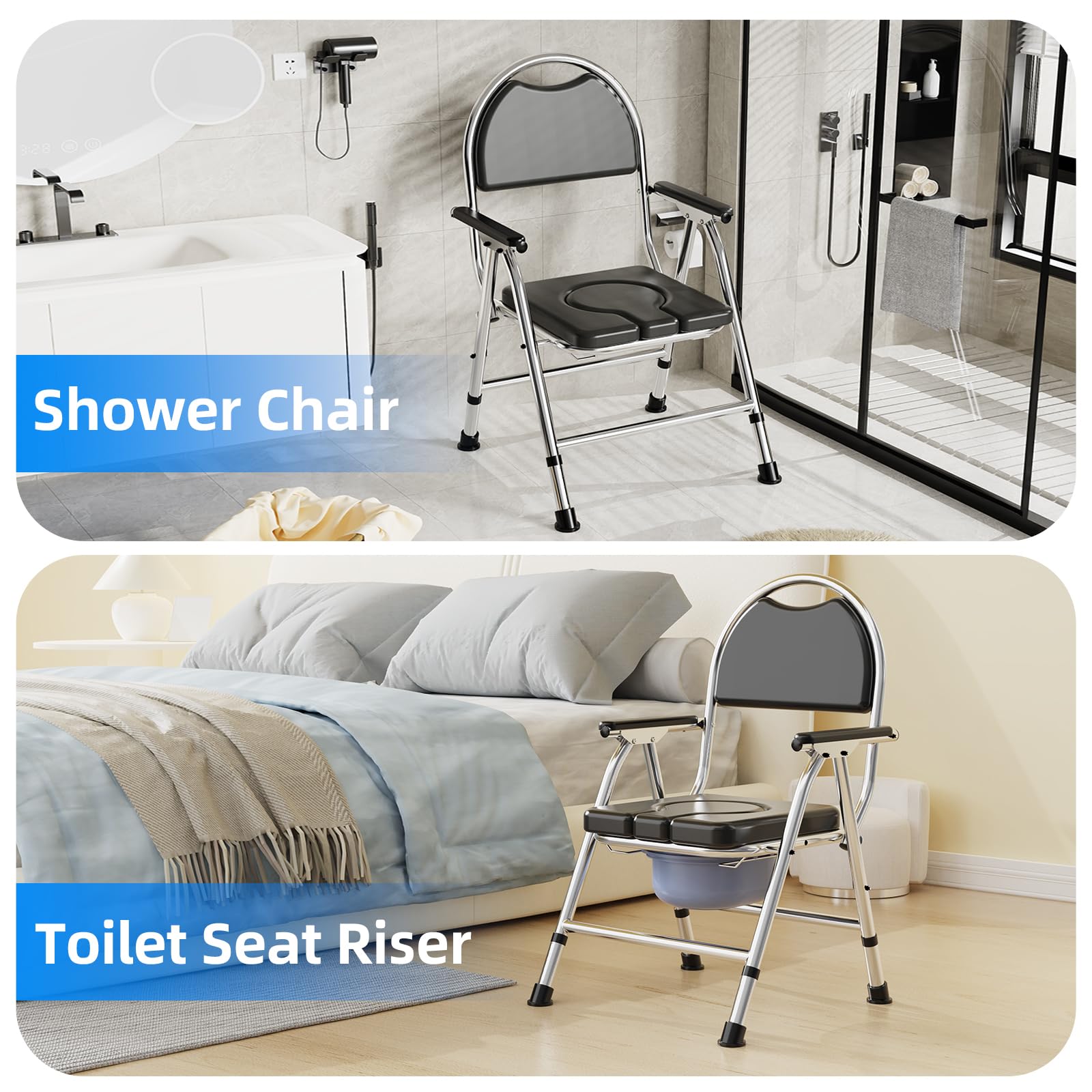 MULTIFUNCTIONAL 4 IN 1 TOILET: Can be used as a shower chair, toilet safety rack, bedside toilet and raised toilet, this drawer toilet is more convenient to clean and use. Meet the different needs of the elderly, adults, disabled or pregnant women in the bathroom, bedroom or hospital.
