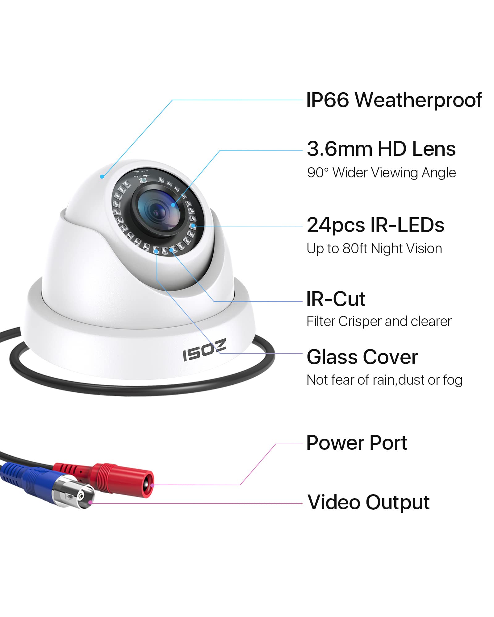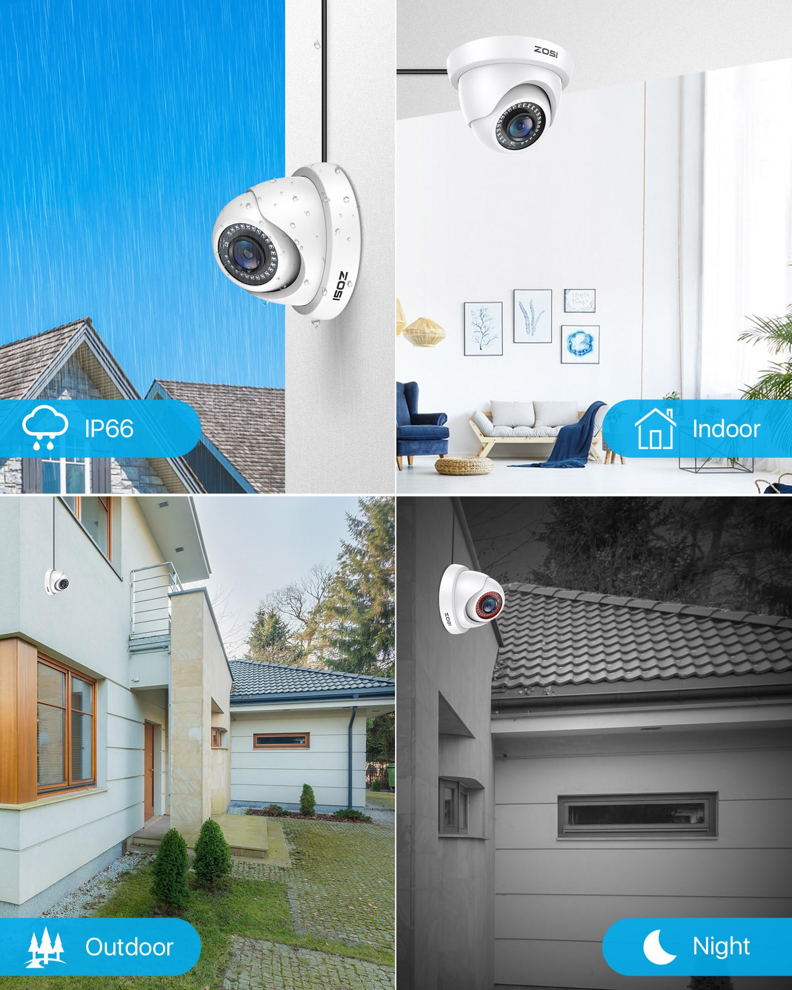 【2.0MP 1080P HD-TVI Dome security camera】This 1080P HD-TVI Dome camera Compatible with 1080P,5MP,4K,HD-TVI analog DVRs. It is recommended to work with ZOSI Analog DVR for perfect compatibility.