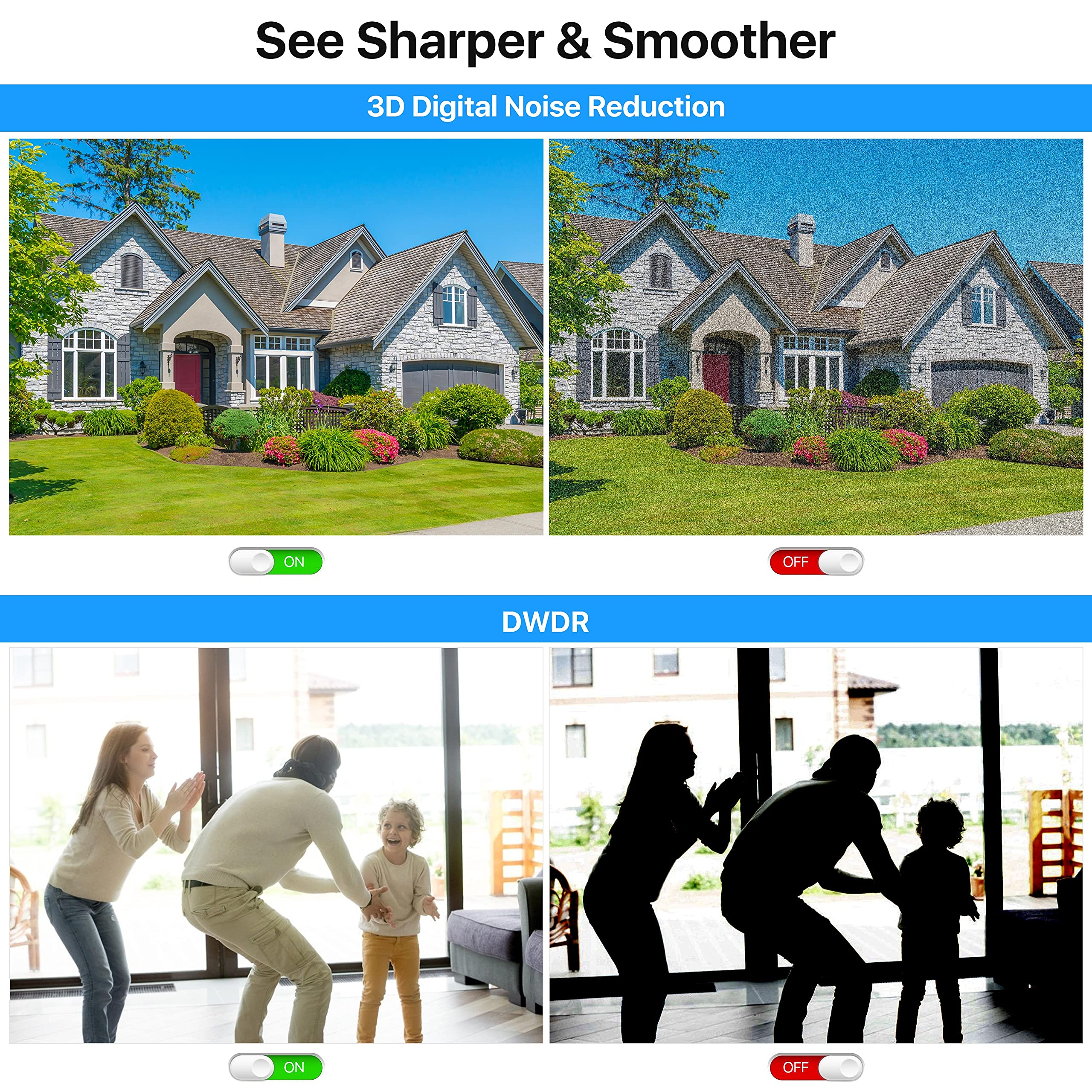 【80ft Night Vision】It can get a sharp and crisp image day or night with the camera's automatic IR-CUT filter. Up to 80ft night vision in total darkness and 130ft Night vision in ambient light. You can see clearly even at midnight.
