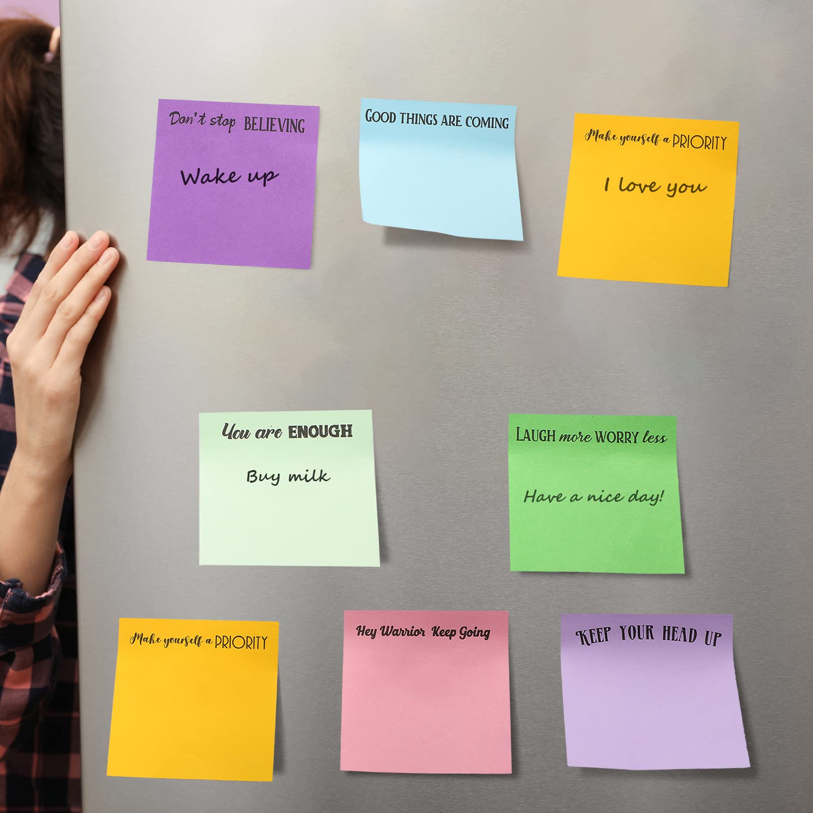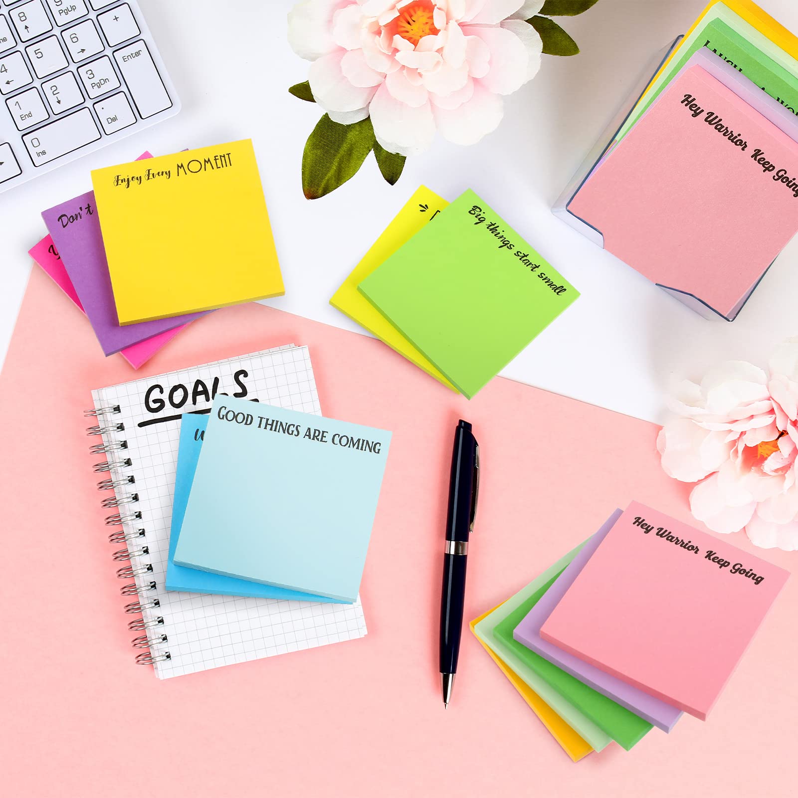 Package Includes: you will receive 12 packs of inspirational sticky notes in various colors and printed with 12 motivational sentences, 50 piece for each pack,600 sheet in total, the size of each self sticky note is about 3 x 3 inches/ 7.6 x 7.6 cm; Sufficient quantity and various designs can meet your daily use and replacements, and you can share them with your friends and colleagues