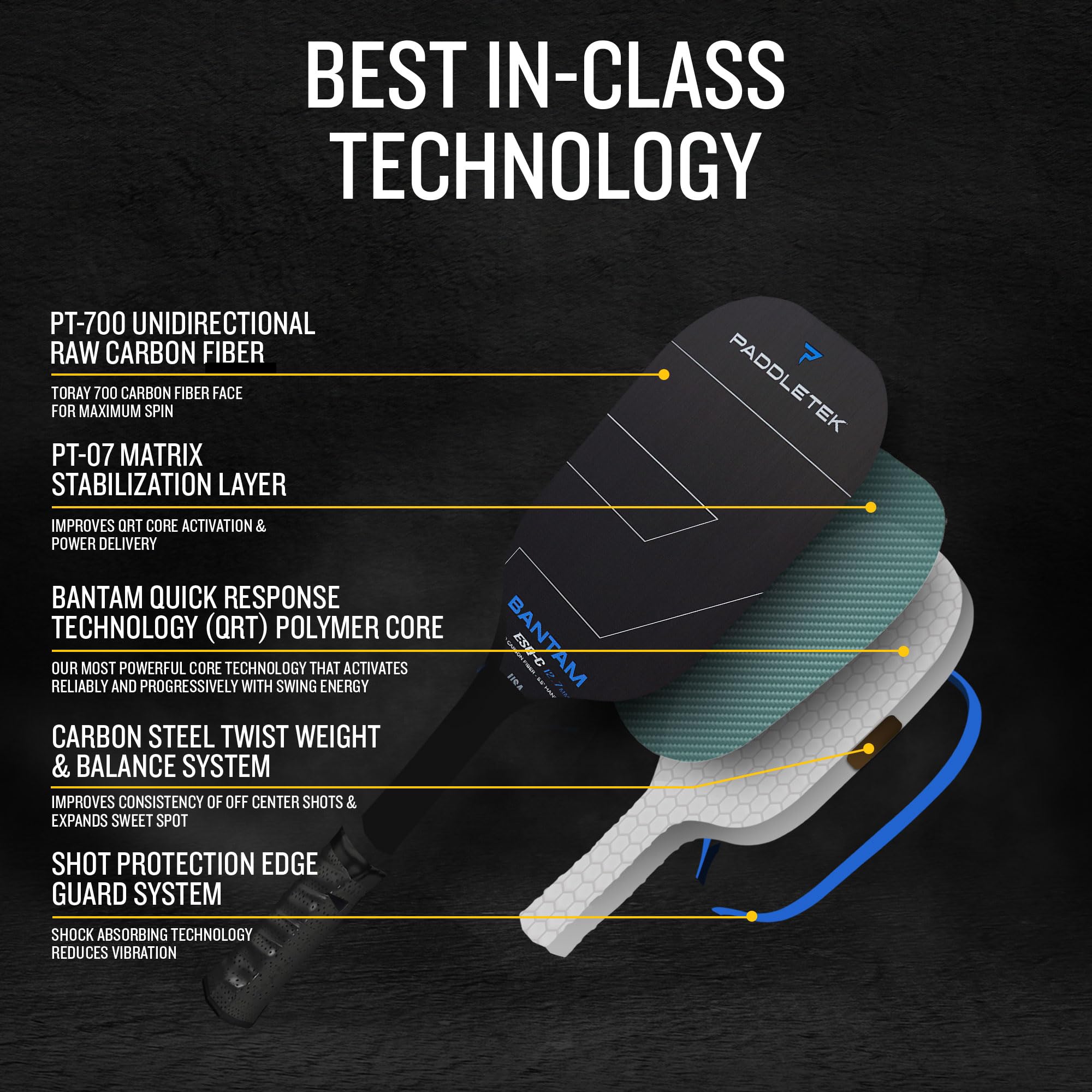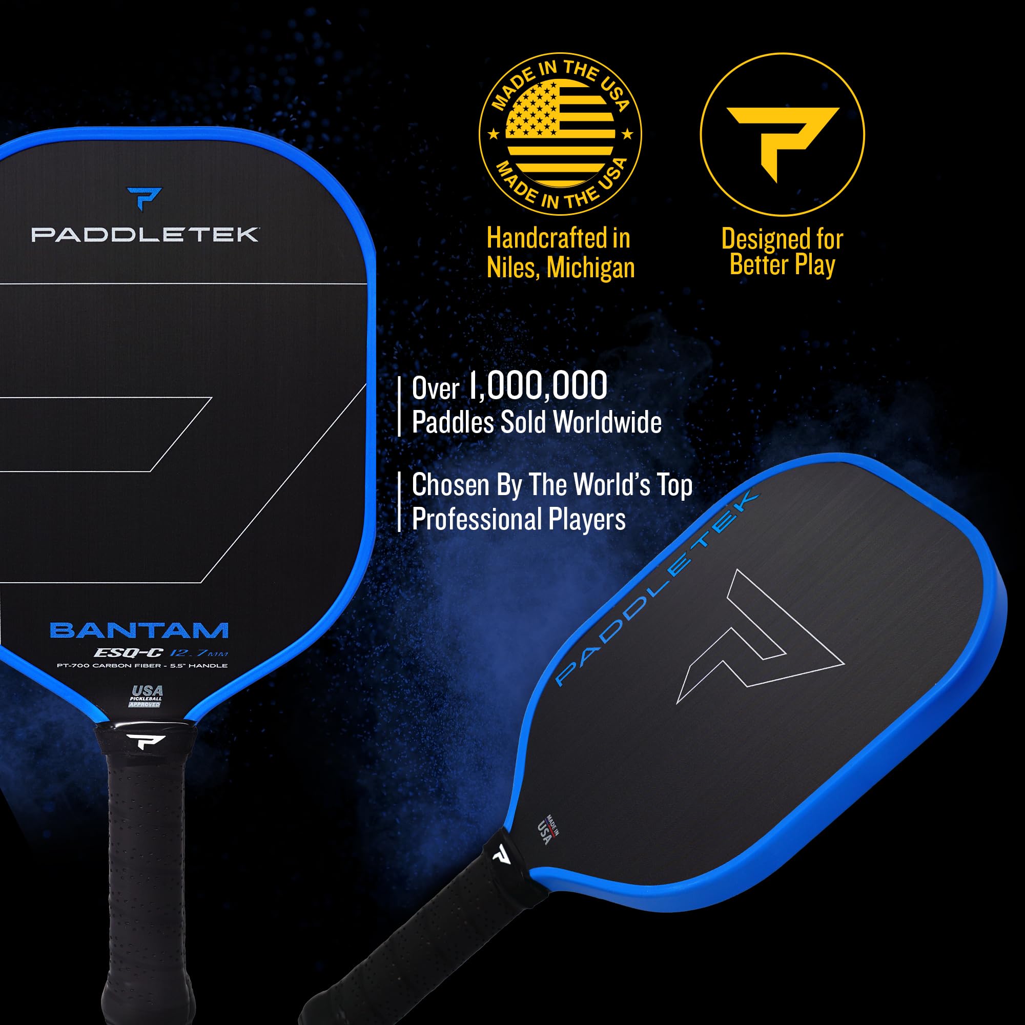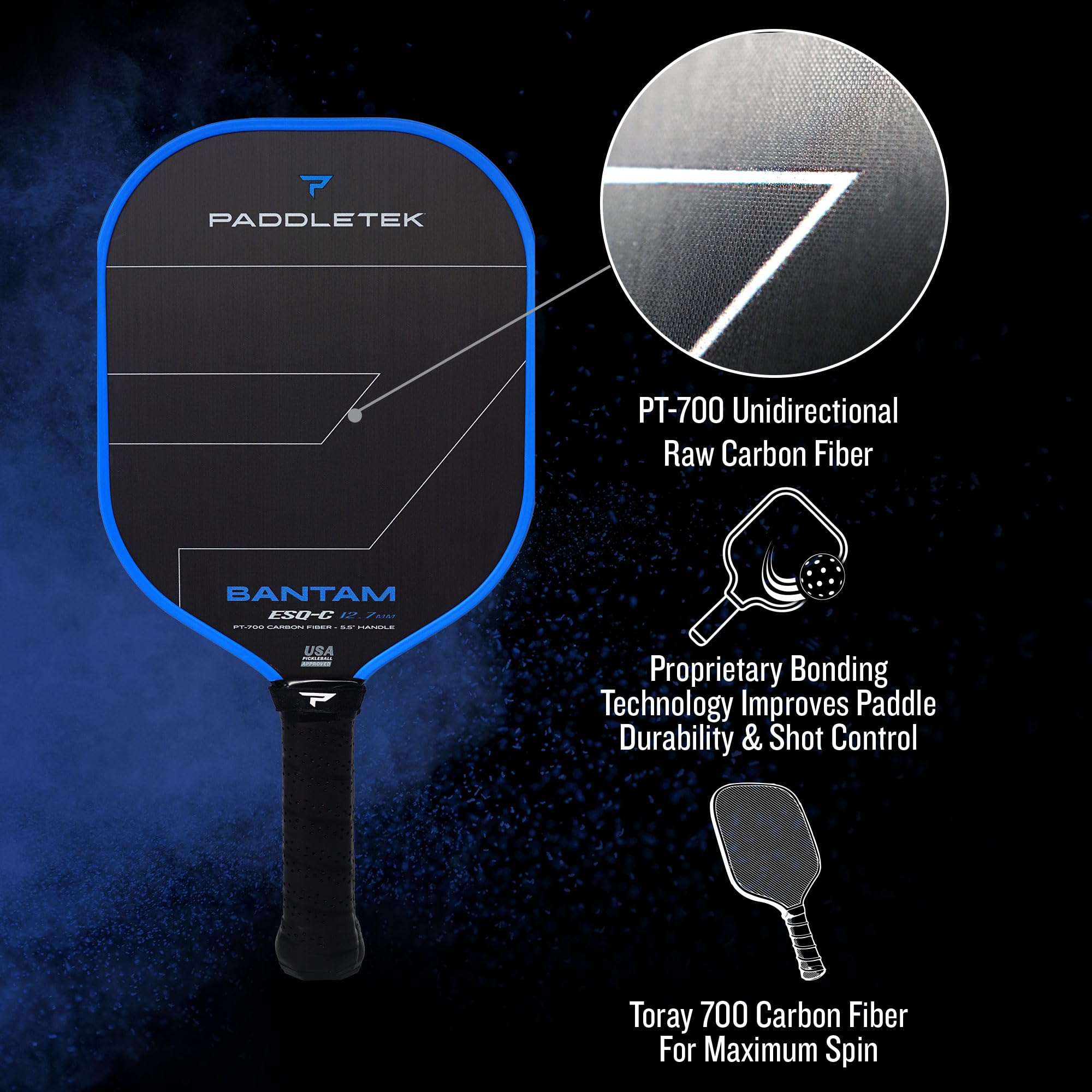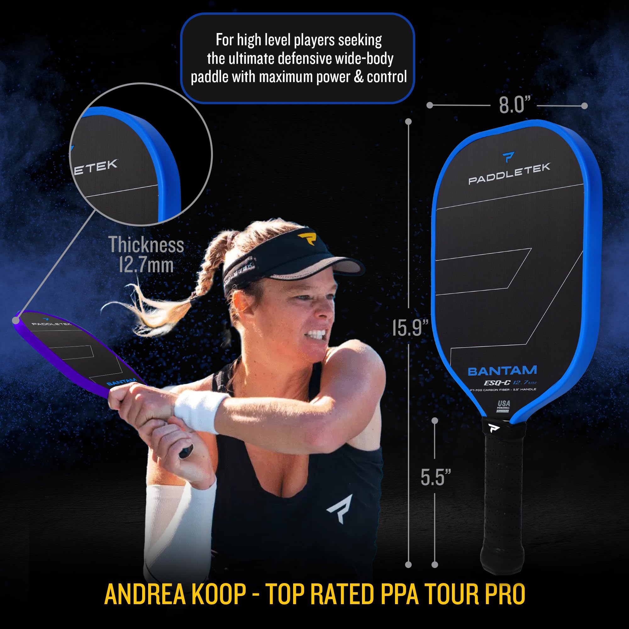 Unmatched Power and Spin: The Bantam ESQ-C pickleball paddle, designed in collaboration with pickleball pro Andrea Koop, features PT-700 RAW carbon fiber for exceptional power and spin. Engineered for serious players, this elite paddle delivers explosive performance to elevate your game.
