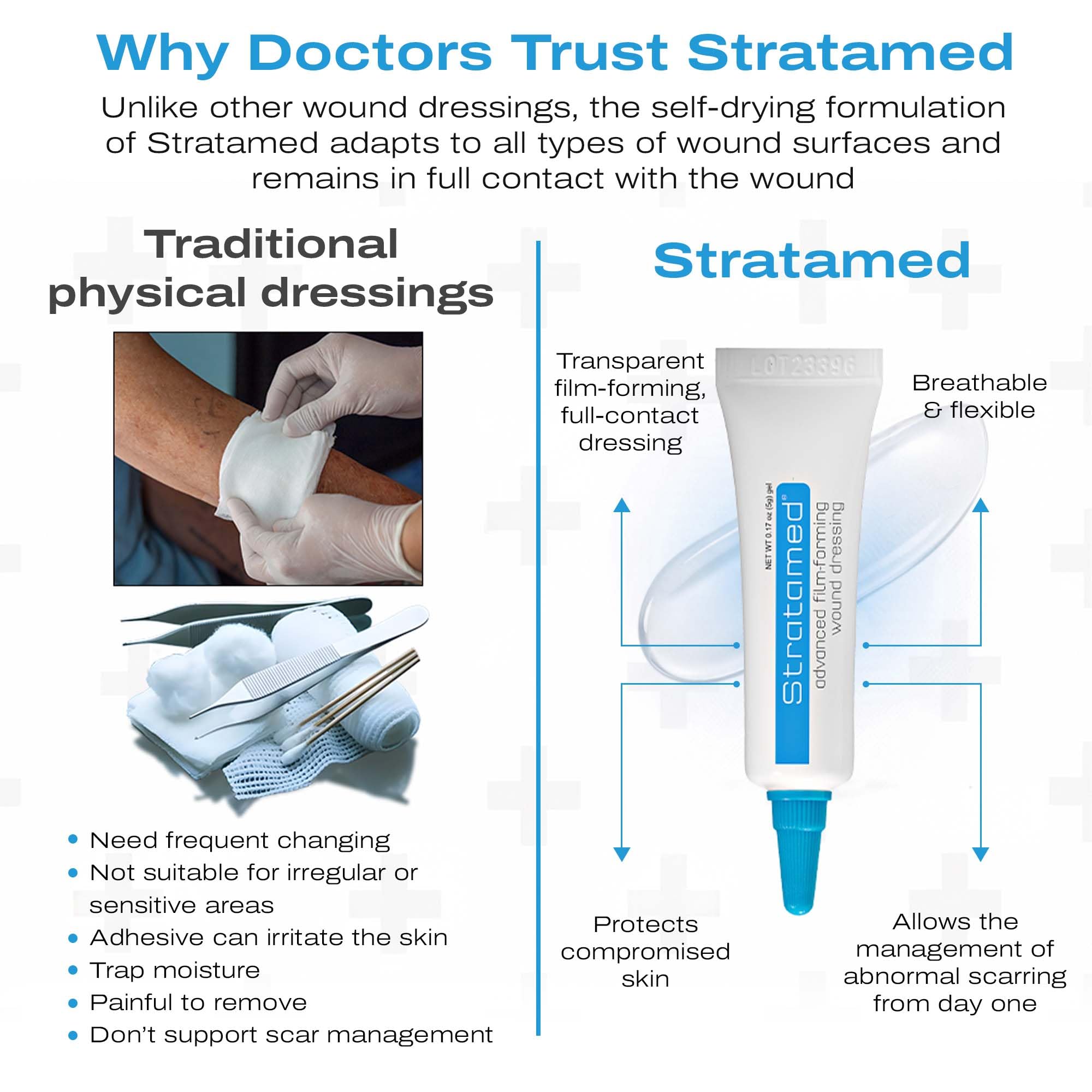 CLINICALLY TESTED & DOCTOR RECOMENDED | Stratpharma Switzerland is World-Renowned for its Innovative Medical Device Topical Solutions in Women’s & Men’s Dermatology, Plastic Surgery & Wound Recovery | Stratamed is Suitable for Continuous Use (24/7 Contact with Skin) & Once the wound is healed Can Be Use in Combination with Strataderm Scar Therapy Gel for the Ultimate Post-Procedure Care