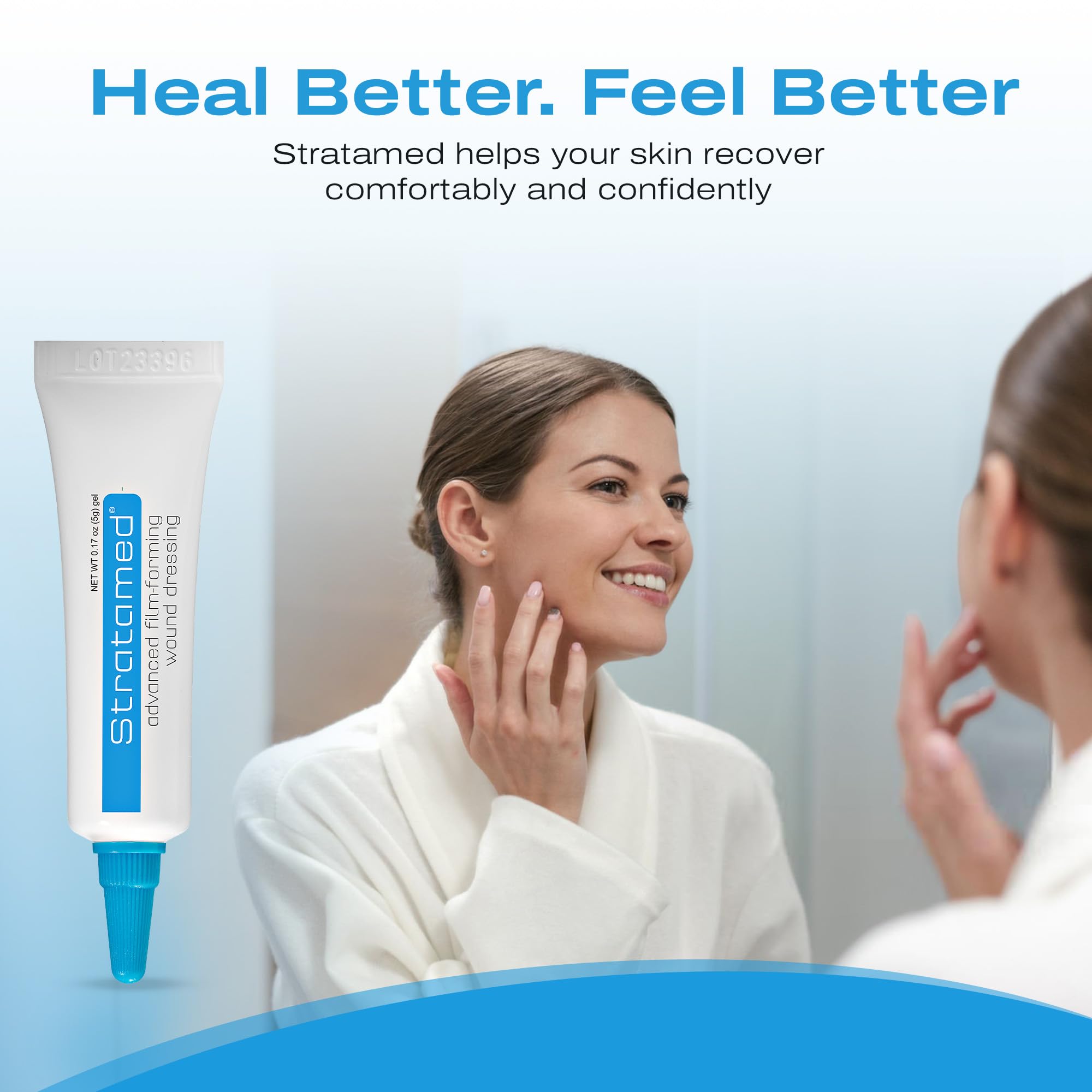 MAXIMUM PROTECTION FOR REDUCED DOWNTIME | Unlike Other Wound Dressing Methods, Stratamed Protects Skin from Infection, Reduces Risk of Contact Dermatitis & May be Re-Applied as Often as Needed to Support Expedited Healing | Once Dry, Can be Covered by Sunscreen, Cosmetics, Secondary Dressings, Pressure Garments, & Casts
