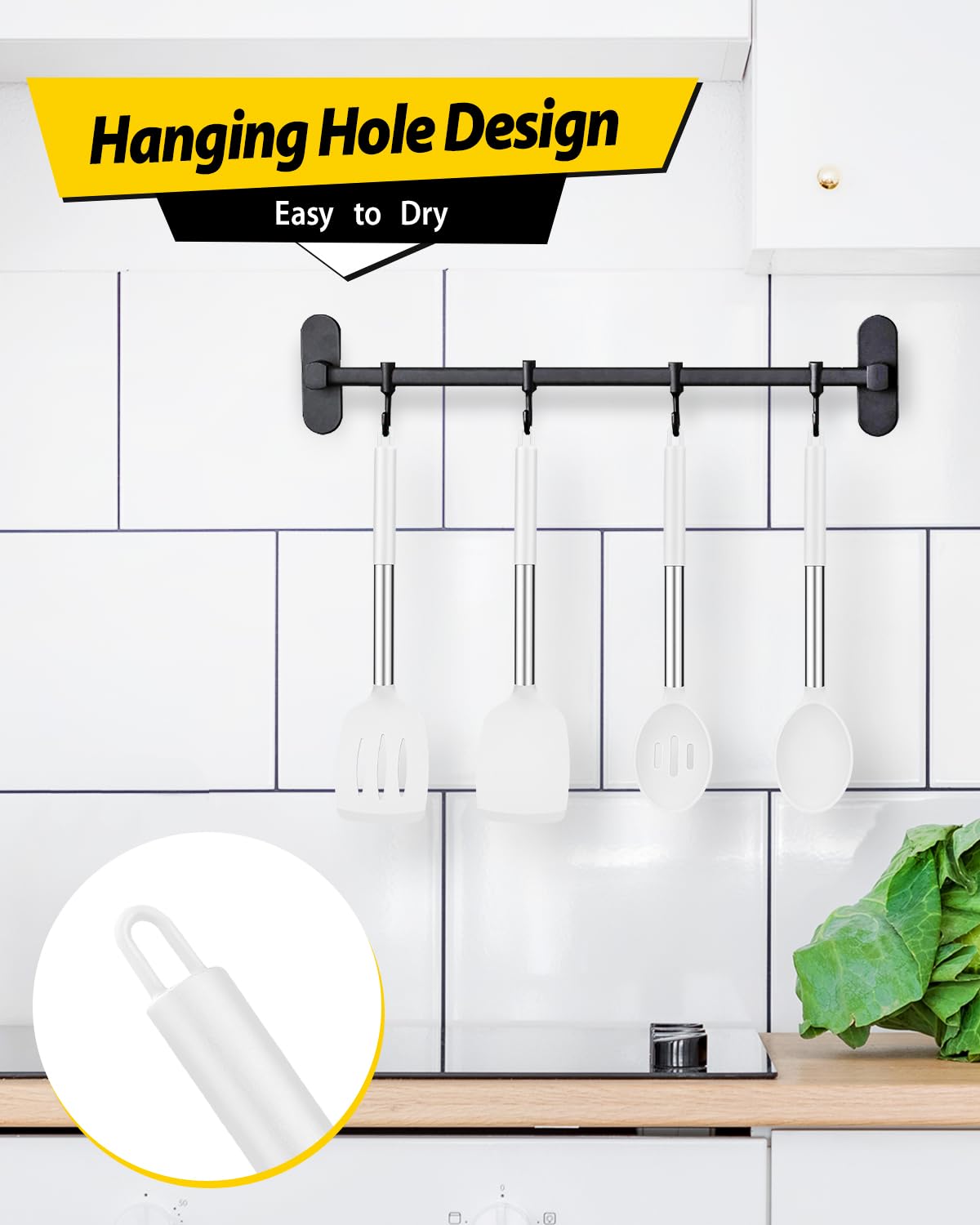 Thoughtful Design : The good-quality 18/8 stainless steel keeps you away from the trouble of kitchen utensils rusting or breaking; This anti-scald silicone handle is not easy to conduct heat and is more comfortable to hold than traditional utensils